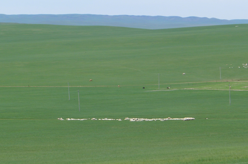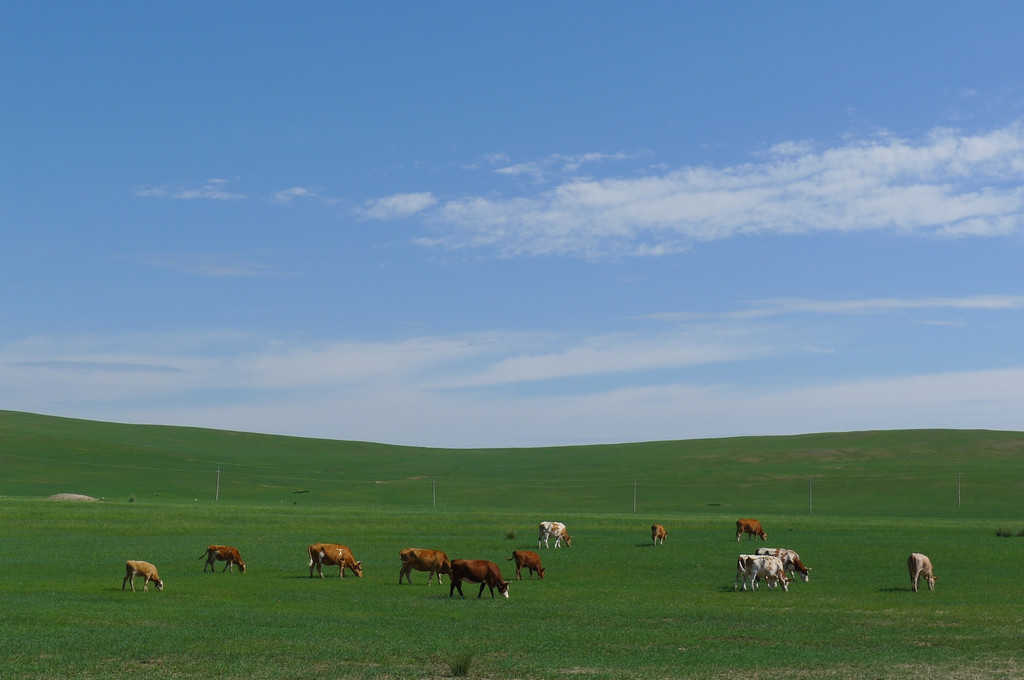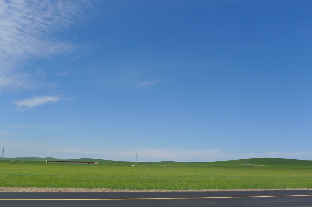 今日领略了什么是天边草原。乌珠穆沁旗是中国羊都,顾名思义,这里养的羊冠绝全天下,但这得益于优良的草场。来此之前,到过多次北京周边各种坝上草原,也深入或呼伦贝尔大草原,但始终没见识过如此连绵不断的草场。这里的草原,四下几十公里你是望不到头的,每一眼都是风景画,随着地形起伏高低错落,随着云卷云舒忽明忽暗,在点缀上虽不起眼但动则成百上千头的羊群,美不胜收,孤寂无边。随着汽车飞驰,时不时入眼一些淡蓝色的湖泊,此时天地一汽,错落而清新。车停在一边,踏入草地,看着眼前的牛羊和散落的云彩,望着一样无际的绿色,铺上餐布,野餐一顿,就连这发面饼蘸炸酱,在这里也吃出了不同味道!这既是今日午餐的解决方案。