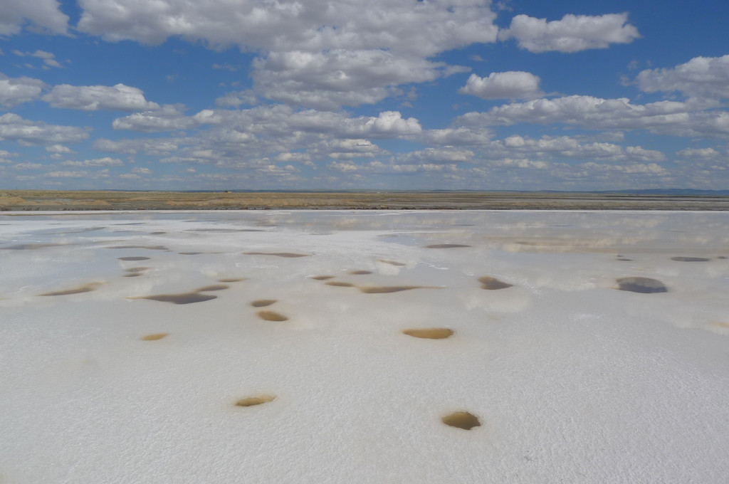 额吉淖尔盐湖也很不错,这里其实是个盐场,而不是个景区。所以开放程度不高,要不是看攻略,谁会知道这里!所以游人自然很稀少。工作人员很热情的,面对工厂大门,说明来意,人家还是很乐意放你进去参观的,说不定还会向你介绍一番,说国内多少的食盐是产自这里。这里虽比不上后来去过青海的茶卡盐湖,但盐湖却不差,只是没有向景区那样特意设置景致和游览措施,但是想要装b照几张以假乱真的相片还是没什么问题的。这里唯一的问题就是晒,我的天,再加上缺水,感觉在这里户外停留的时间不能超过半小时,否则感觉会被晒成干。这也就可想而知盐场工人作业的艰苦了,向他们致敬!
