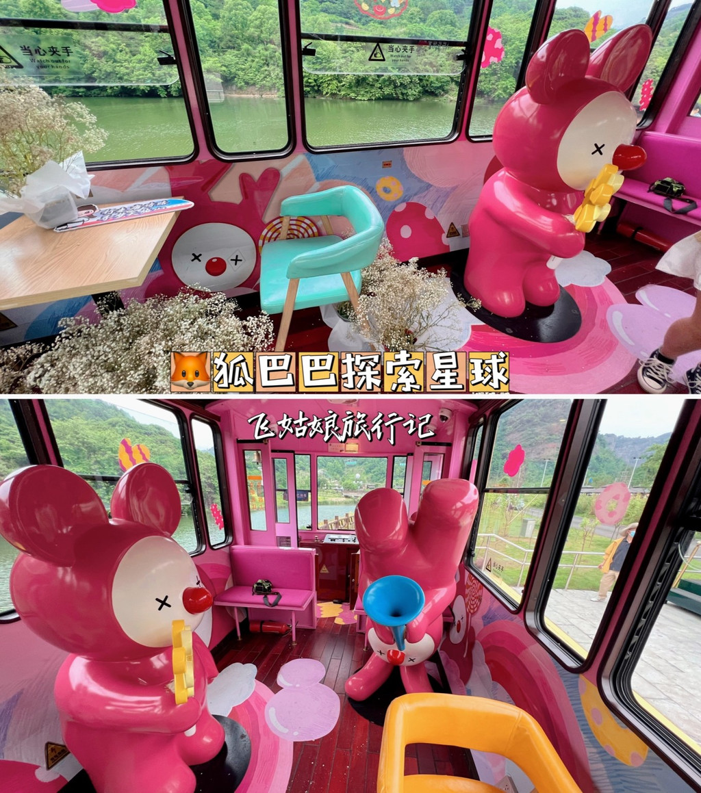 坐上粉色的小火车,像是走进了公主童话梦,车厢里的布置,深受小姐姐们喜爱。