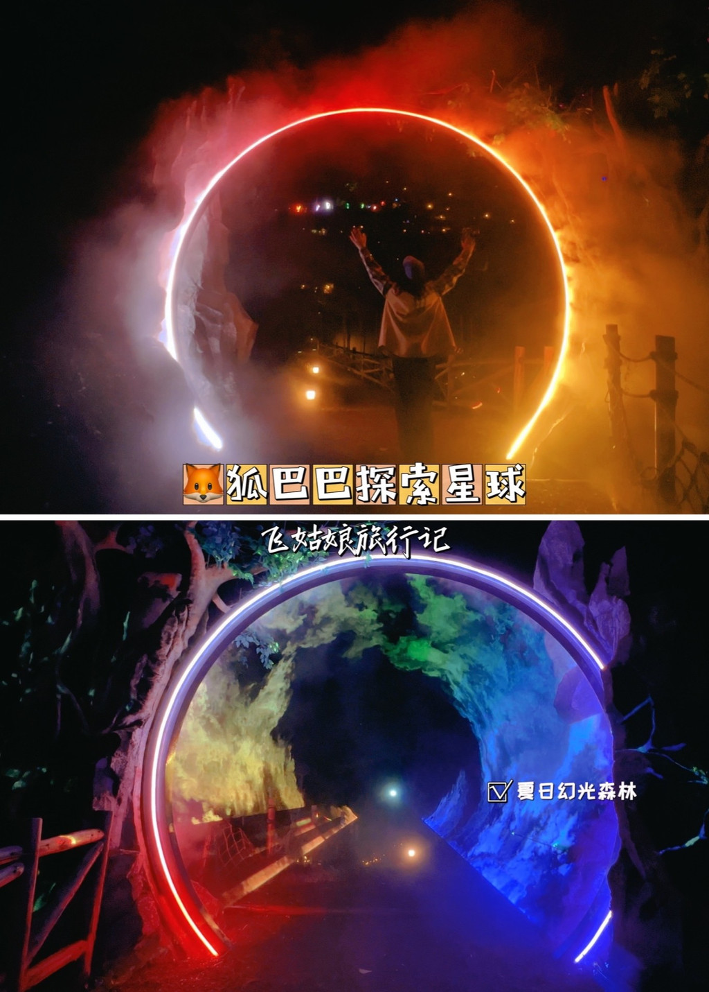 森林奇幻夜,黑夜像被幻光森林施了魔法,十九峰变得奇幻无比,在这里沉浸式体验森林中的魔法世界;