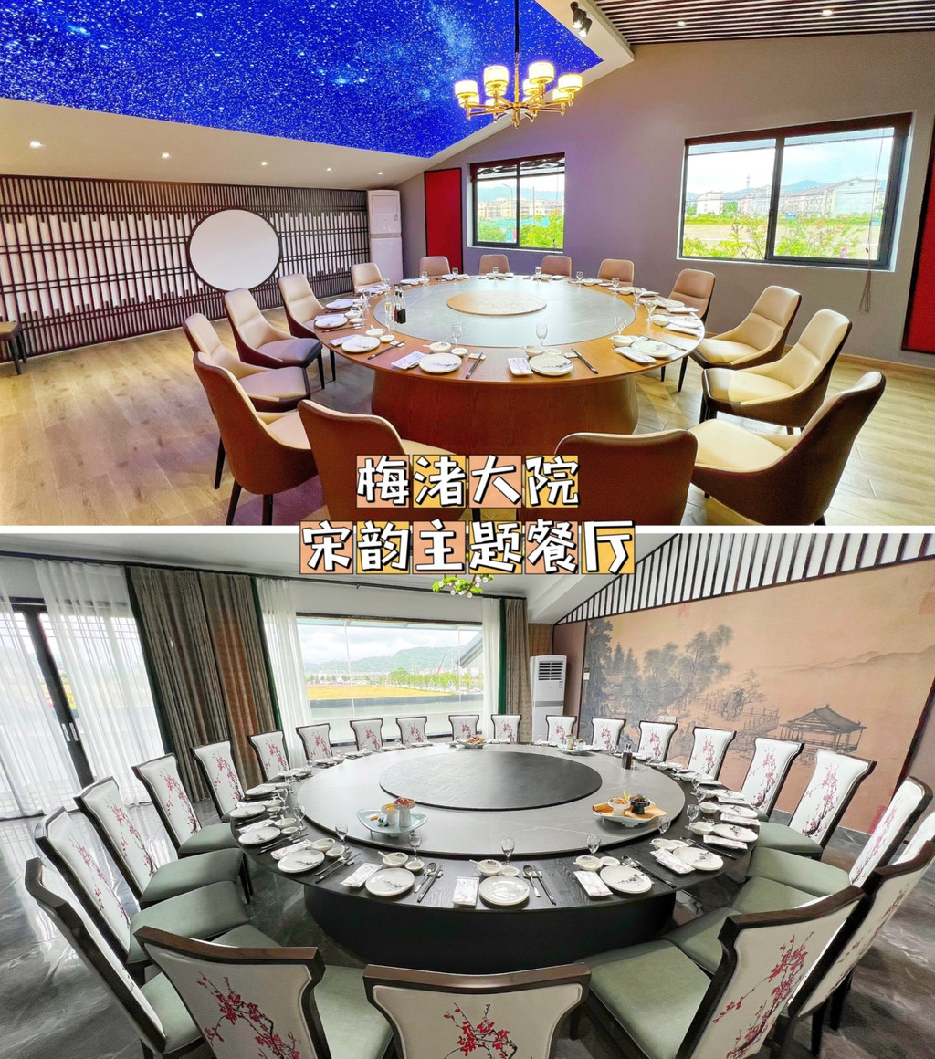 梅渚古村的梅渚大院宋韵主题餐厅,梅渚花海