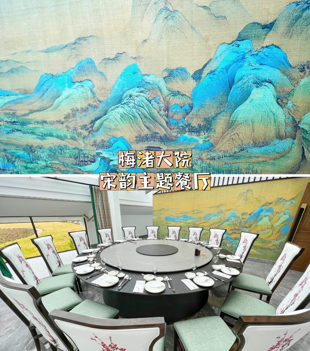 打卡梅渚大院宋韵主题餐厅,包厢设计高端大气上档次,青绿山水画,宋代名家字画,品尝美食的同时还能感受浓郁的宋韵。