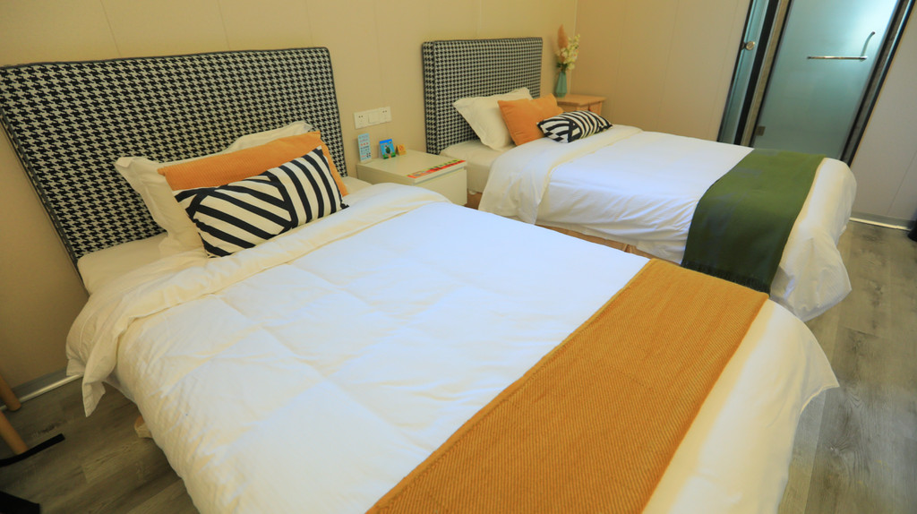 房间空间大,亲近山林,推开窗户就是满眼田园风光,很适合度假。