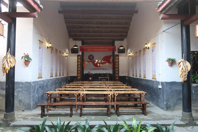 秀田红色教育基地秀田红色教育基地位于新丰县马头镇秀田村楼下古屋。该古屋以红砖木瓦的结构为主,始建于清朝道光年间(1818年前后),是秀田村黄氏第六代祖先黄自章的祖屋,距今近200年历史。黄自章生于清乾隆年间,自章公号德磊,因文才出众,镇守边关有功,被皇帝敕授登仕郎。古屋大门两边有牌匾:郎官第和武官第;左右对联为:文官定国,武略安邦。秀田黄氏祖先崇文尚武,尊师重教;楼下古屋钟灵毓秀,人才辈出,先后出过第七代黄元智(号书林国学生)、黄元善(号春林增痒生);第八代黄如陵(号兰洲优癝生)、黄如勋(皇清授国学生)。