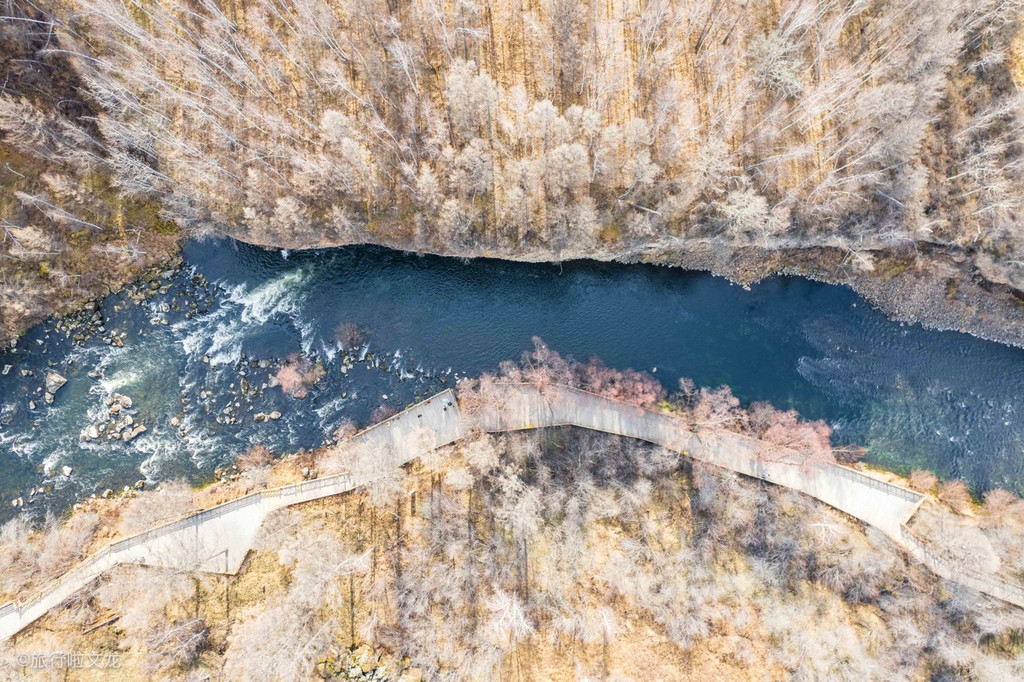 我们站在观景的栈道上,观看着三潭峡的景色,没想到河流湍急的小小三潭峡的峡谷,全长居然有3公里多的长度,最值得赞叹的便是三潭峡周围的美景,夏天三潭峡的美景,色彩是郁郁葱葱的绿色,而到了秋天便是不一样的色彩。红色,浅绿色,白色,黄色相互点缀,这就是秋天该有的色彩啊。河流湍急的拍打着石头,犹如泛出白色的丝带流向天边,一望无际。