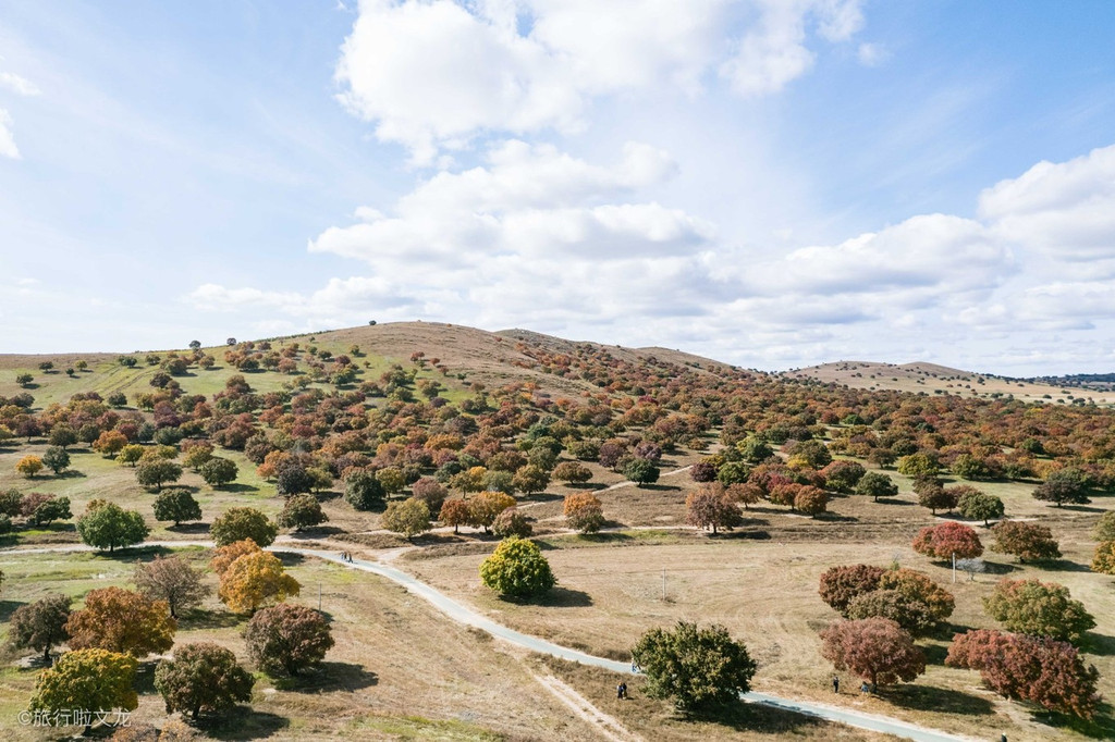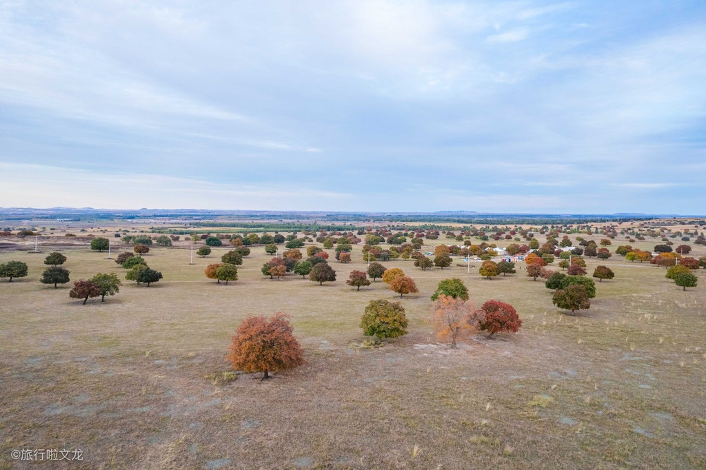通红的枫叶是秋天最具有代表性的景色之一,内蒙古兴安盟的秋天,对于喜欢枫叶的人来说,最不能错过的便是内蒙古科尔沁草原代钦塔拉上生长的最特别的五角枫的枫树林。