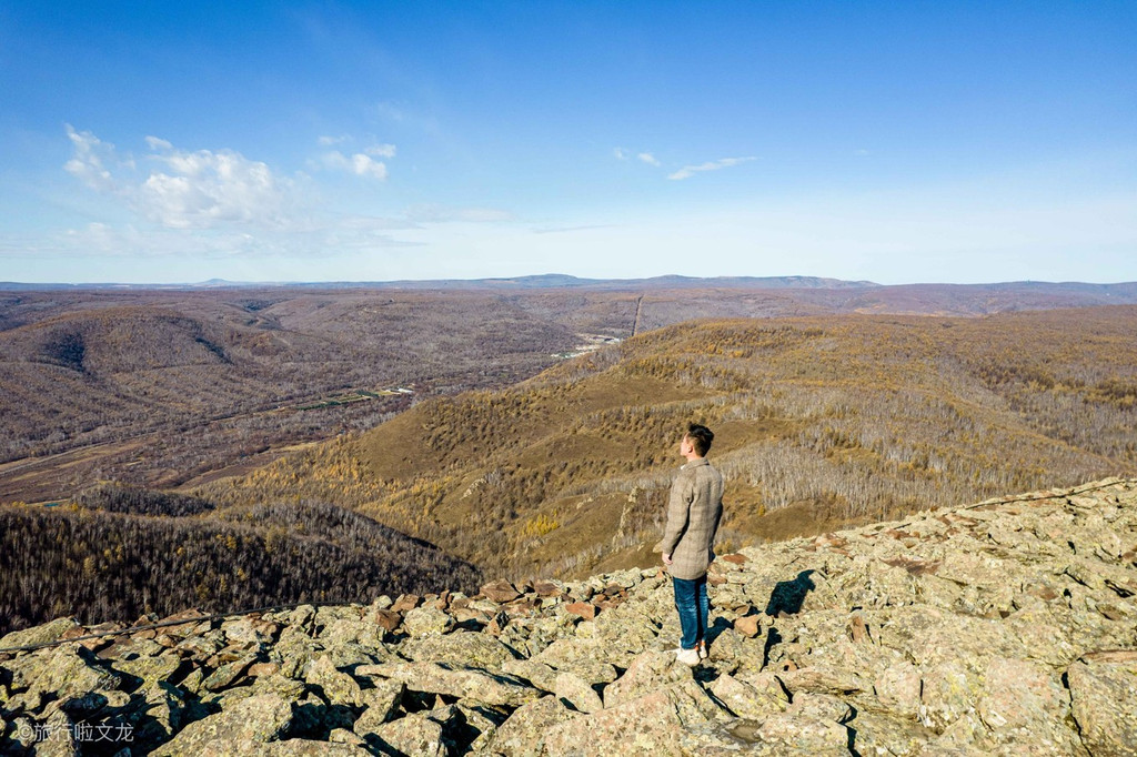 森林面积较大的白狼峰,秋季树叶全部飘落,整片光秃秃的,景象也是看着有些许的荒凉,但其独特的景色依旧保持不变,白狼峰也有几个景区也值得去观赏。大兴安岭,兴国安邦的石碑在大石头上刻着,告诉我们这里的名称,很多人都在石碑旁拍照留念。