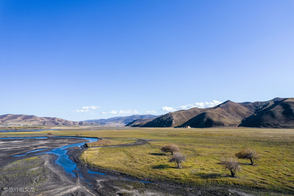 乌兰河静静蜿蜒曲折地流淌在乌兰毛都大草原上,水很蓝,很清澈,犹如银蛇在跳舞,入秋的大草原,慢慢的进入了一片黄色掺杂绿色的状态。而在夏季乌兰毛都草原,是可以作为草原放牧人最佳放牧之地,这里的草很鲜美,很嫩,乌兰河也哺育着牛羊们和当地的人。