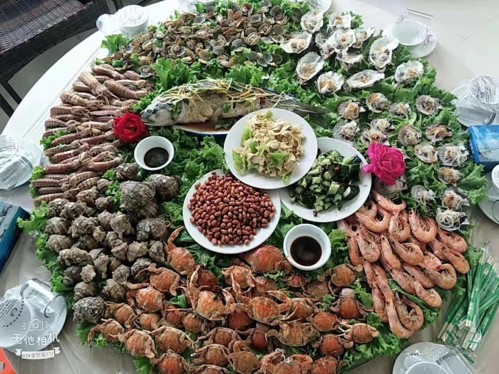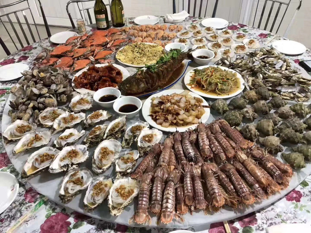安排我们住宿以后,带我们到海边买海鲜老板说“可以给加工一斤才2元,回来又点了几个特色家常菜。老板先做着,我们就去海边玩了。半小时后老板打电话说吃饭,我们回来一看特别丰盛,我们边吃边聊,喝了点啤酒吃了特色《虾爬馅饺子》。