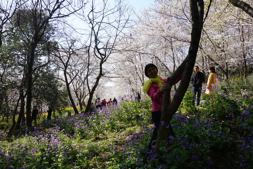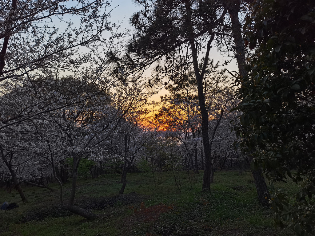 傍晚时分,我们登上了十里花径旁的小山坡,贪婪般享受着落日时给满山偏野的樱花带来的另一种景象。