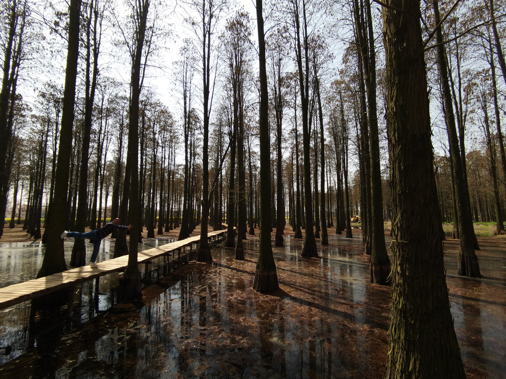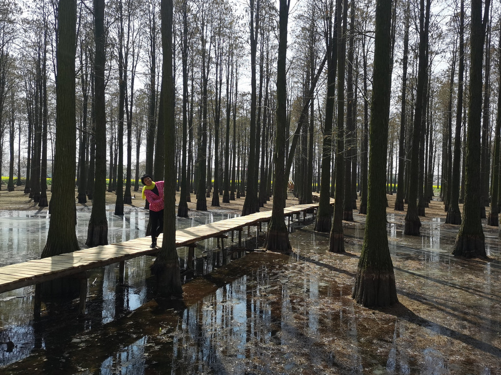 本来想去李中水上森林景区看那些笔挺整齐的水杉的,但想到扬州也有个渌洋湖湿地公园,里面也是一样的水杉,就放弃了李中水上森林公园,开车前往扬州, 到渌洋湖湿地公园。