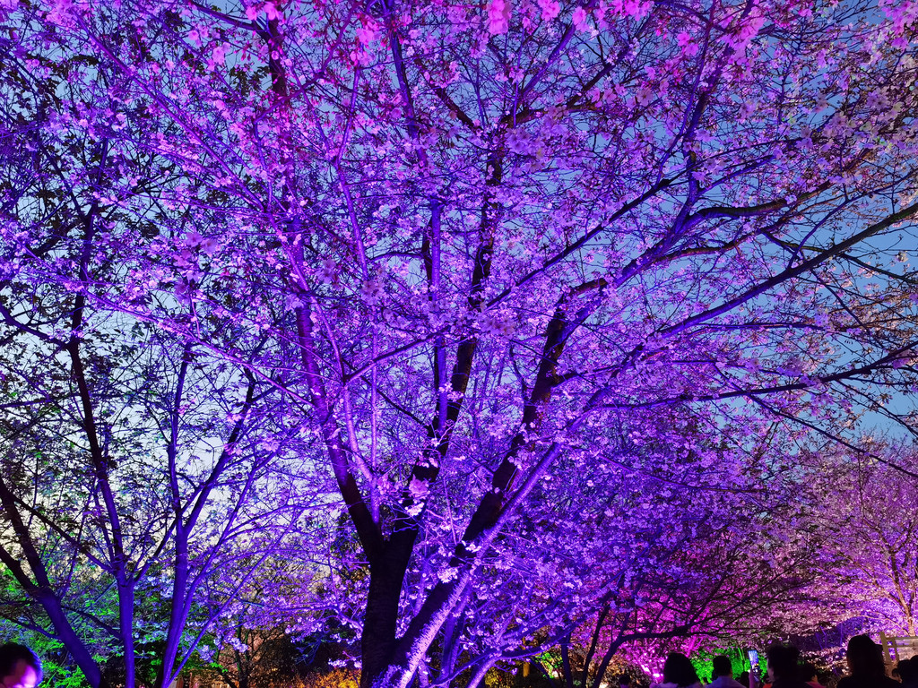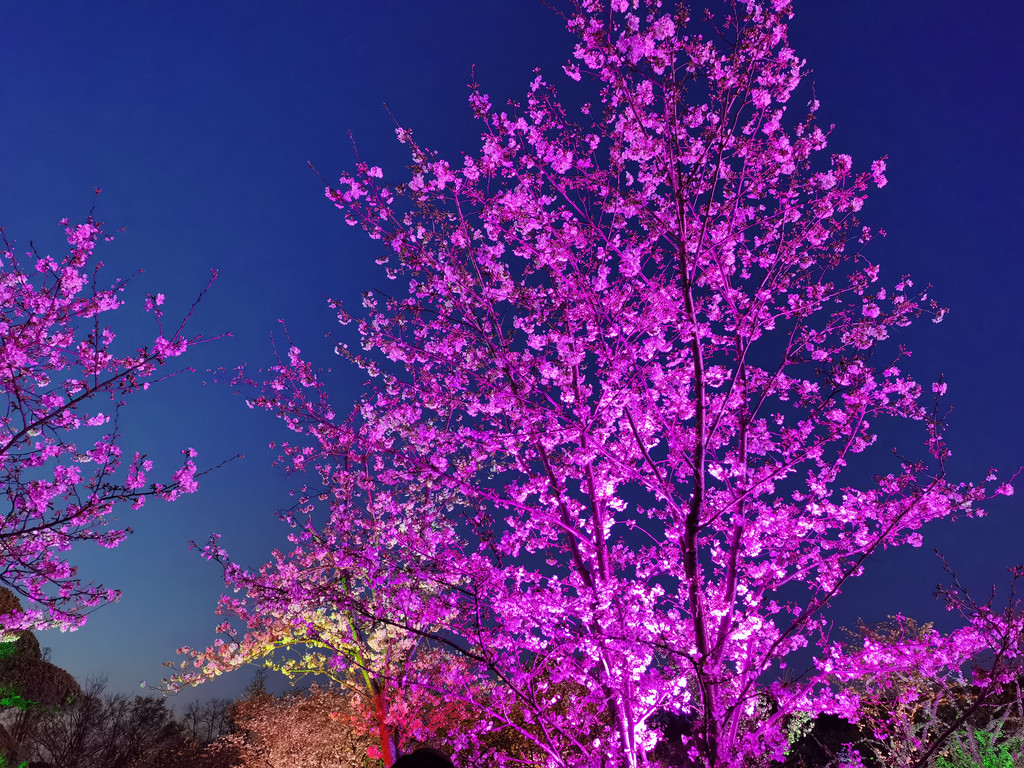 从3月19日开始,鼋头渚开放了樱花夜公园,游客们可以一直玩到夜间9点,在夜色中伴着七彩斑斓的灯光慢慢地欣赏。此时的樱花显得更加妩媚动人。