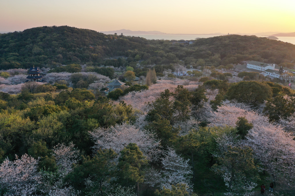 每年春天,坐落在太湖旁边的鼋头渚就会被一片粉色浪漫包围,游客们都会涌到鼋头渚只为了看看烂漫的樱花海。