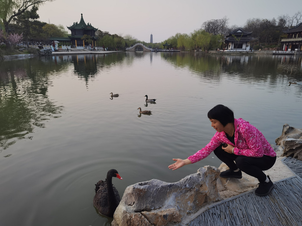 接近六点,十里花花径,此刻游人已渐渐散去,似孚成了我俩的专属剧场,忘情地跳了起来。