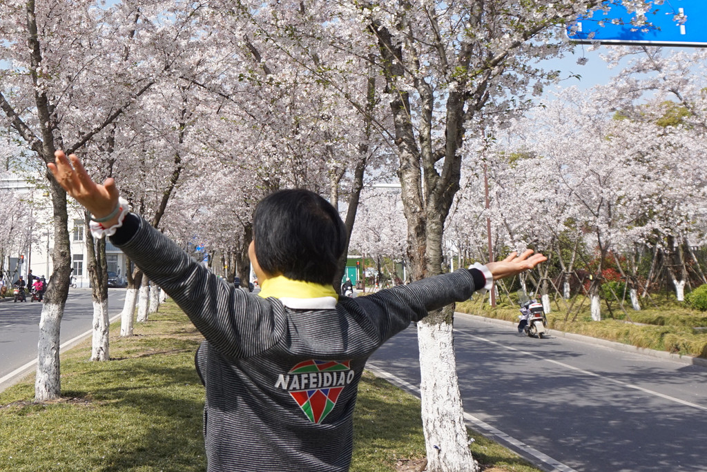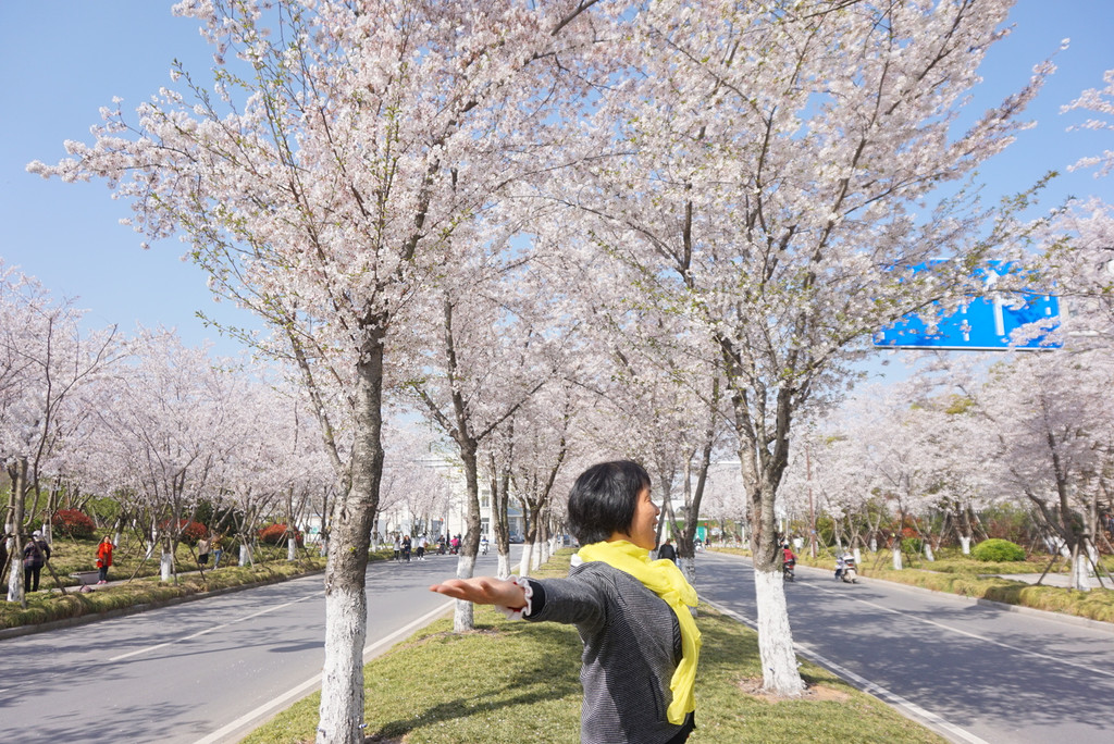 扬州鉴真路的樱花,开得如此灿烂,让大道两旁都充满了生机,比那鼋头渚也毫不逊色,而且还是免费的唷。 赏樱以东西纵横一线的鉴真路、西湖路为路线,路两侧的樱花树下每每有人驻足拍照,花白如雪,花粉如黛,绚烂着整条大道,樱花盛开,灿若云霞,用温柔的粉色拥抱着一切。 看那樱花朵朵开,樱花随风飘落,恍如下起了雪,满树粉、白、红的各种樱花,挂满枝头,让春天的意气四溢飘扬。