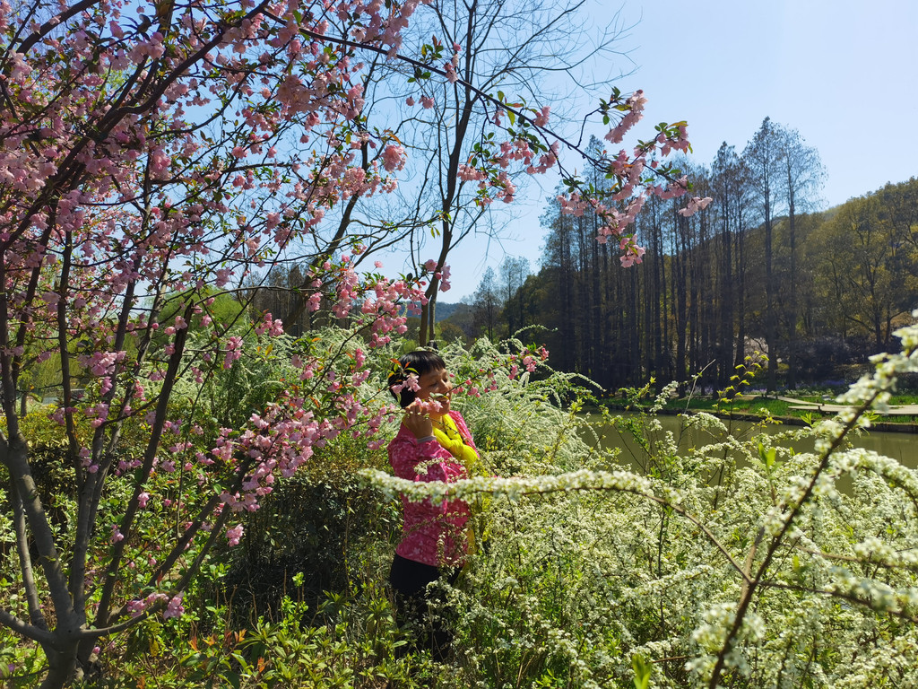 我们本已买好带游览车的套票,进大门后发现等待坐车的游人排了好长的队伍,于是就沿着充山大门 → 充山隐秀 → 挹秀桥 →赏樱阁一路慢慢走去。其实这一路也不远,大概不到2公里,穿过充山隐秀往左上挹秀桥一会就到了,而且沿途还有很美的景色,坐车就会错过。
