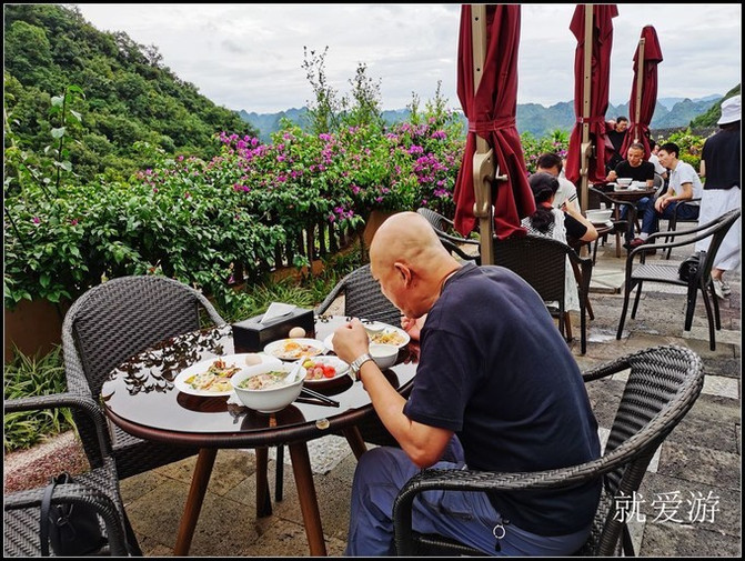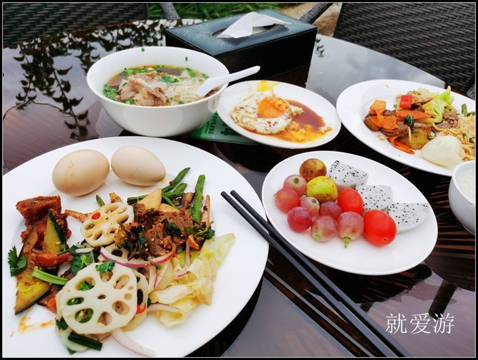 酒店的自助早餐比较丰盛,在户外享用,鸟语花香,令人惬意。