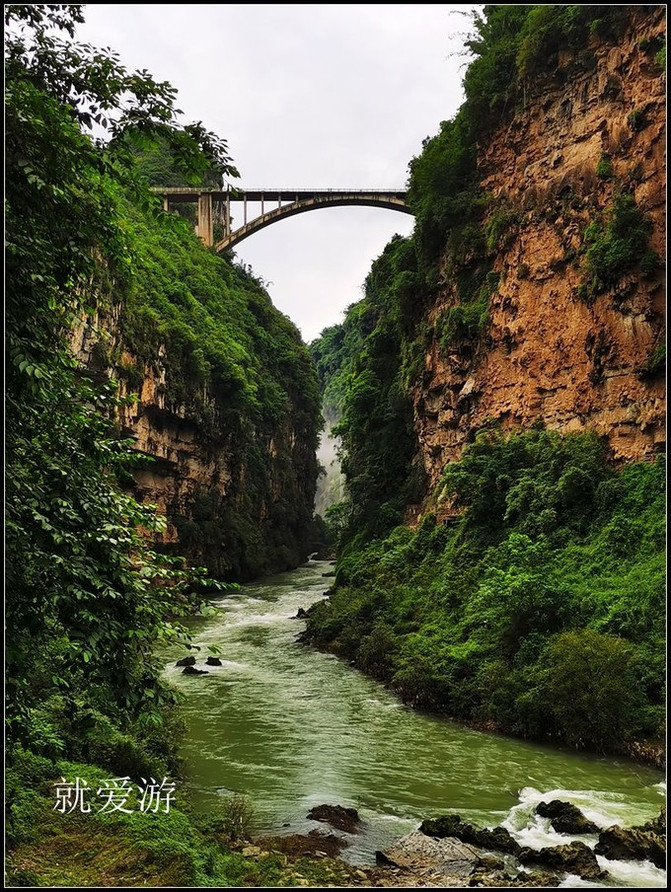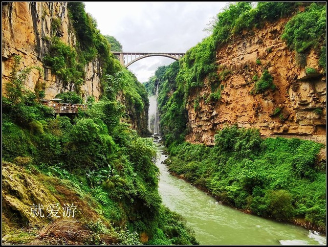马岭河峡谷风景区马岭河峡谷从 河源 至河口长约100公里的流程内,落差近千米,下切能力强,在海拔1200米的坦荡平川上切割出长达74.8公里、谷宽50-150米、谷深120-280米的马岭河峡谷。两岸众多支流因下切速度滞后于主流,形成了上百条高逾百米的瀑布坠入深谷之中。