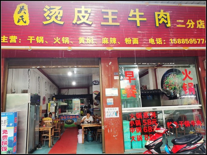 这家烫皮牛肉火锅店不错,价格实惠分量足,要了一斤已煮熟切好的带皮牛肉、牛肚、牛肠,连火锅带蔬菜,全部82元,我们两人还吃不完。