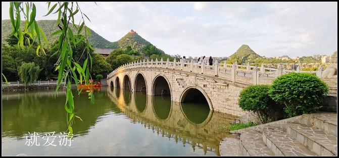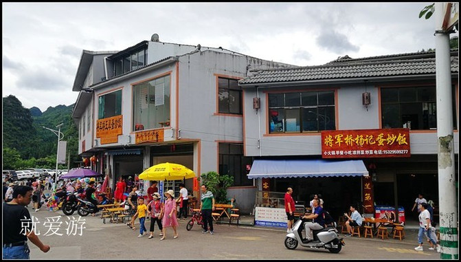 万峰林风景区景区大门边的将军桥,这里是游客吃饭和购物的地方。