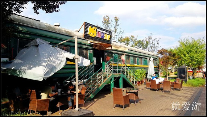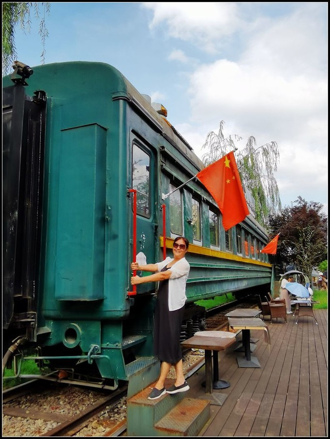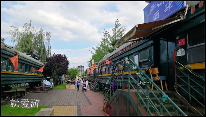 六盘水六盘水六盘水老式的蒸汽机车和绿皮车厢陈放在河边,改造成为酒吧俱乐部。