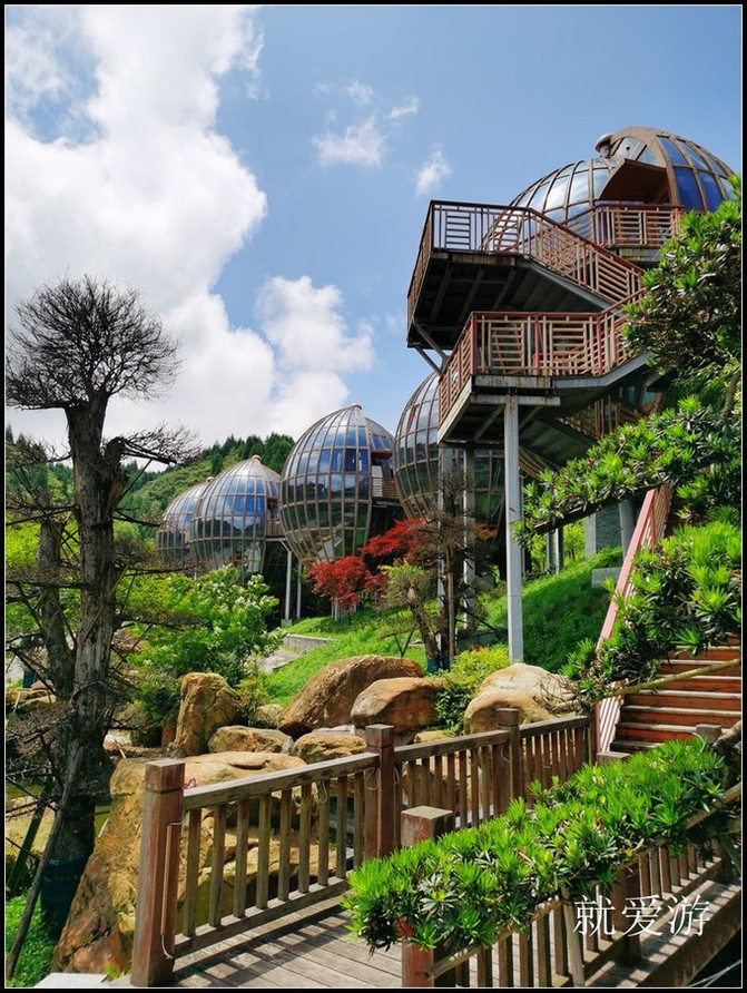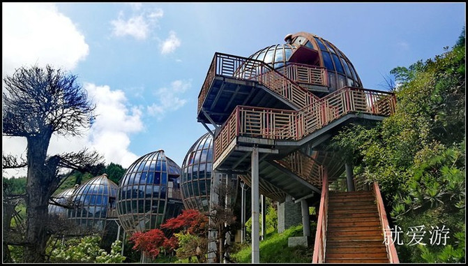 梅花山旅游景区梅花山旅游景区梅花山旅游景区梅花山旅游景区梅花坪景区最高处的建筑是球状观光餐厅。目前餐厅虽早已停业荒废,但这里是登高望远的最佳地点。