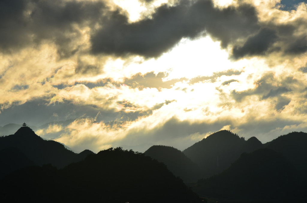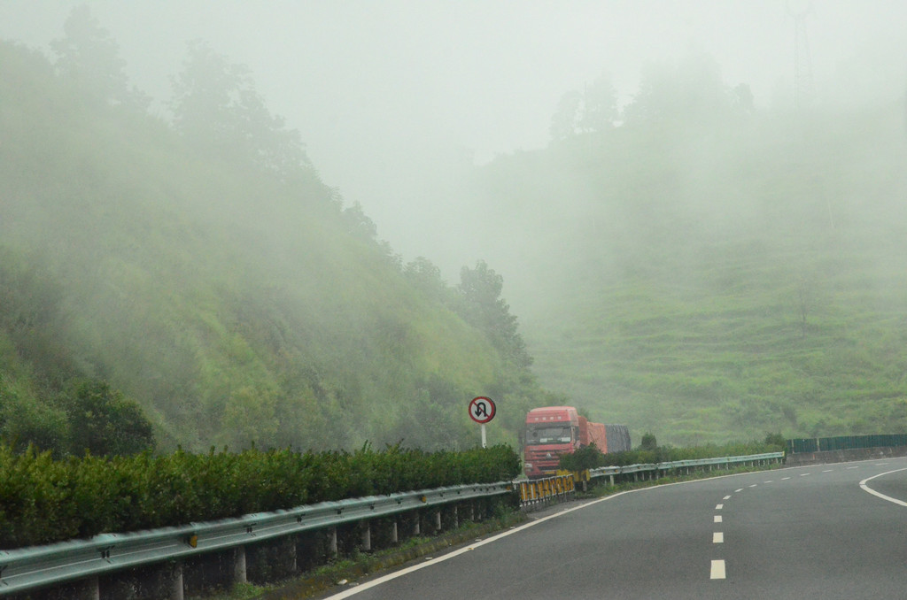 2014年8月29日,我们一行四人从安顺驱车往西,驶向兴义市。“美不美,乡中水”,开车不久,故乡的山山水水就给了我一个意外的惊喜:只见山间有影影绰绰的雾向路面袭来,一会儿就变成了弥天大雾,仿佛科幻电影的场景;远处时隐时现的山脉则烟云缭绕,有如童话世界。驶入几十里的云山雾罩之中,真真切切体味了宋朝女诗人李清照唯一的豪放词 “天接云涛连晓雾” 的意境,难怪有一部描写贵州的电影取名《云雾山中》。虽然能见度只有几百米,不过驾车的老弟曾开车到过新疆西藏,加之今天车流稀少,几公里才见一辆车,安全不成问题。