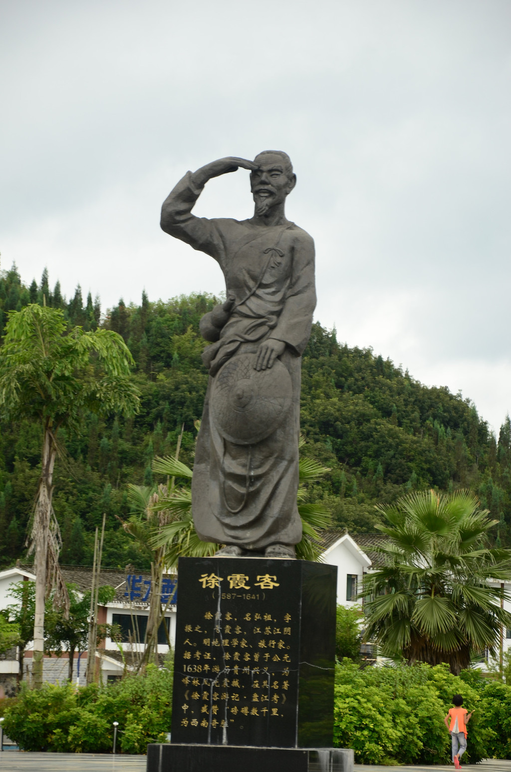 图 入口处广场上的徐霞客雕像。明代旅行家徐霞客于1638年游览至此,盛赞万峰林 “磅礴数千里,为西南奇胜”。