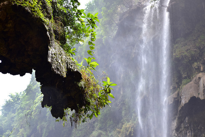 喀斯区的河水含碳酸钙很重,在跌落过程中迅速释放出二氧化碳,将碳酸钙附在崖壁上。久而久之在峡谷两壁孕育出规模宏大、气势磅礴的钙化瀑布群,碳酸钙挂壁是这里的一道奇观,千姿百态,你会感受到大自然的无限神奇。