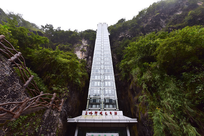 为方便游客景区安装了观光电梯,乘坐电梯上下谷底40元,电梯高71米,相当于24层楼的高度。不过如果你行李不多或者是平常锻炼得比较多的话可以选择从旁边的栈道下去,也就是二十多分钟的路程。