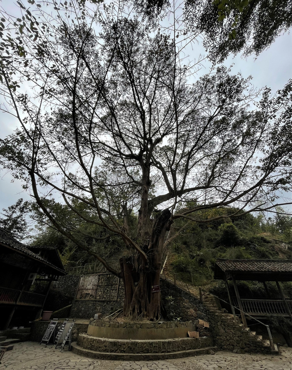 下纳灰村的大榕树广场,几棵古榕树屹立在桥头,像一把巨伞,郁郁葱葱,很是古朴和历史感。