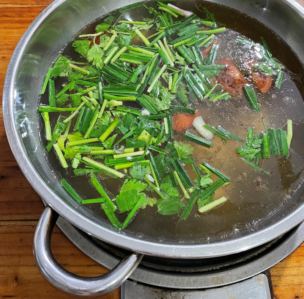 我们选择了火锅吃法,鱼在上桌前已经做好了,我们先喝鱼汤,太鲜美了,鱼肉蘸着蘸水吃,小青菜鲜美可口,一顿鱼吃的我们美美的!