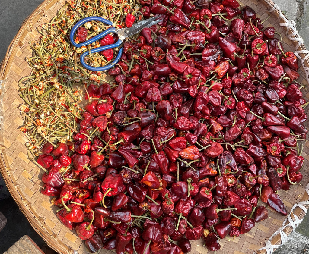 顺着街道往里走,就进入大集啦,首入眼帘的,是卖猪肉的,一扇一扇的猪肉摆放在案板上,豪横都是正扇买走!再往里走就是各个小摊,卖菜的、卖水果的、卖米粉的、还有卖衣服的,还真是热闹,集市也不大,就是一个村里的大集,我们去的时候都9点多了,估计赶早的一拨早都回去了。我们买了点水果,准备带着今天出去玩的时候吃。