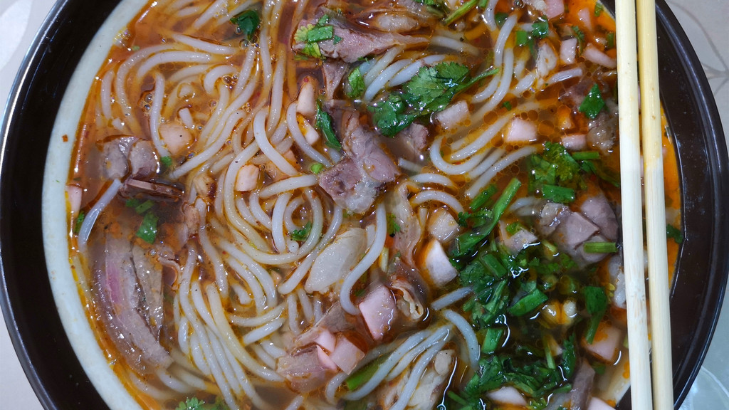 在下灰纳村,来碗羊肉米粉,回客栈休息。