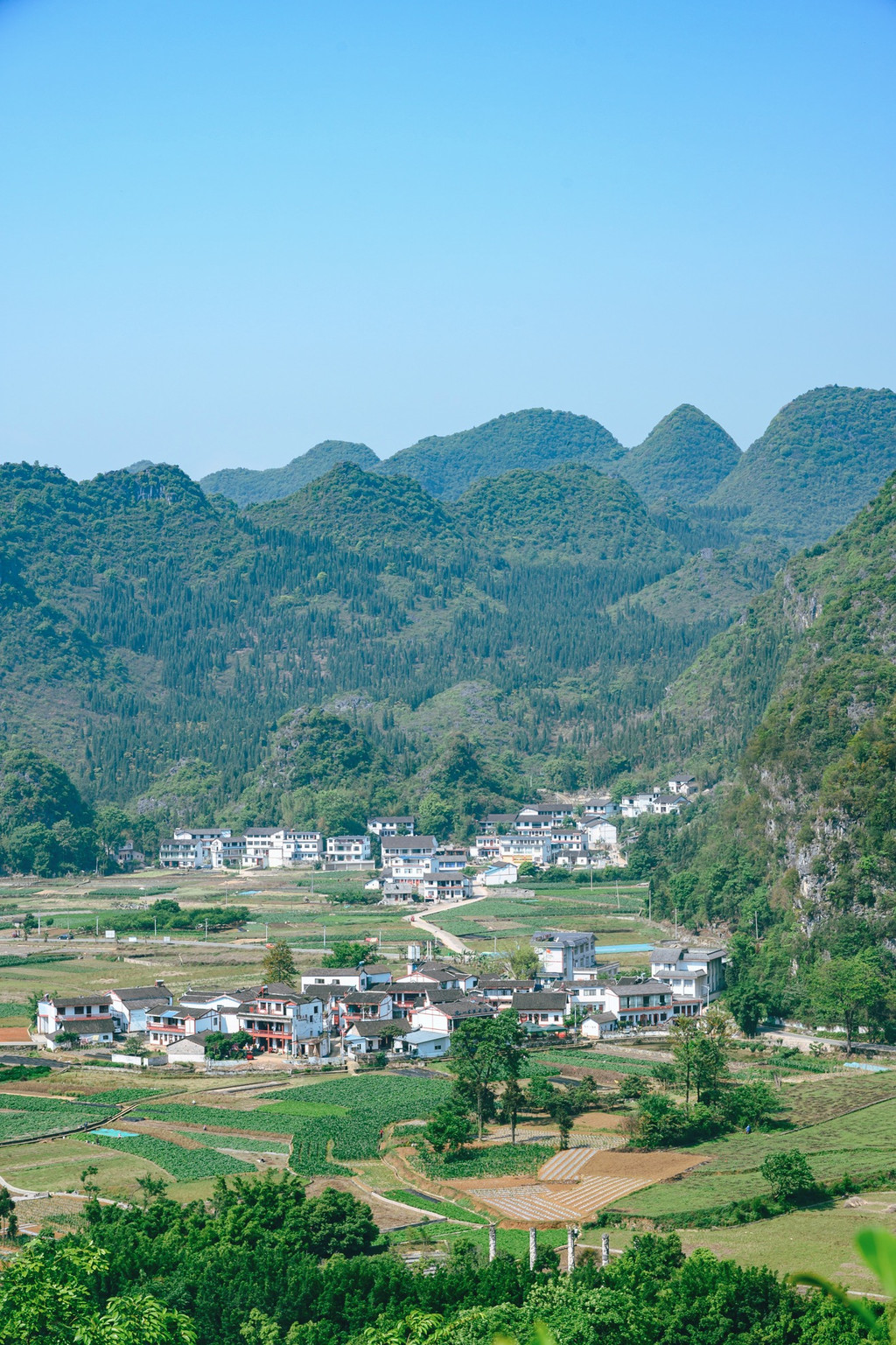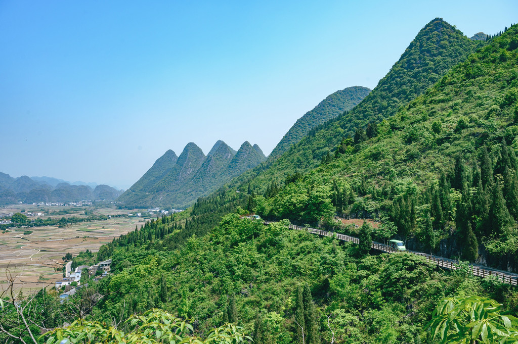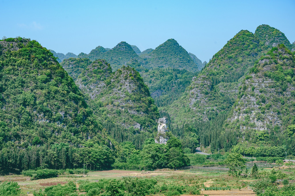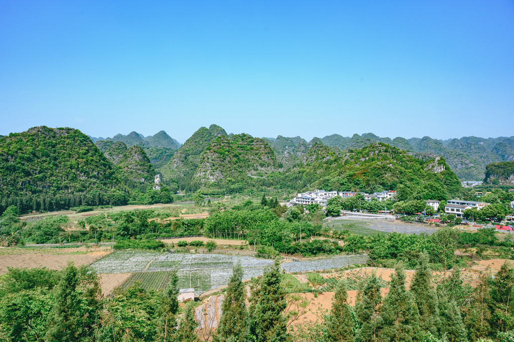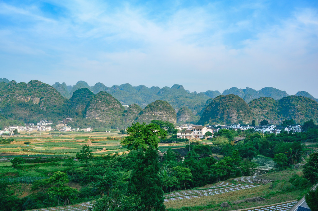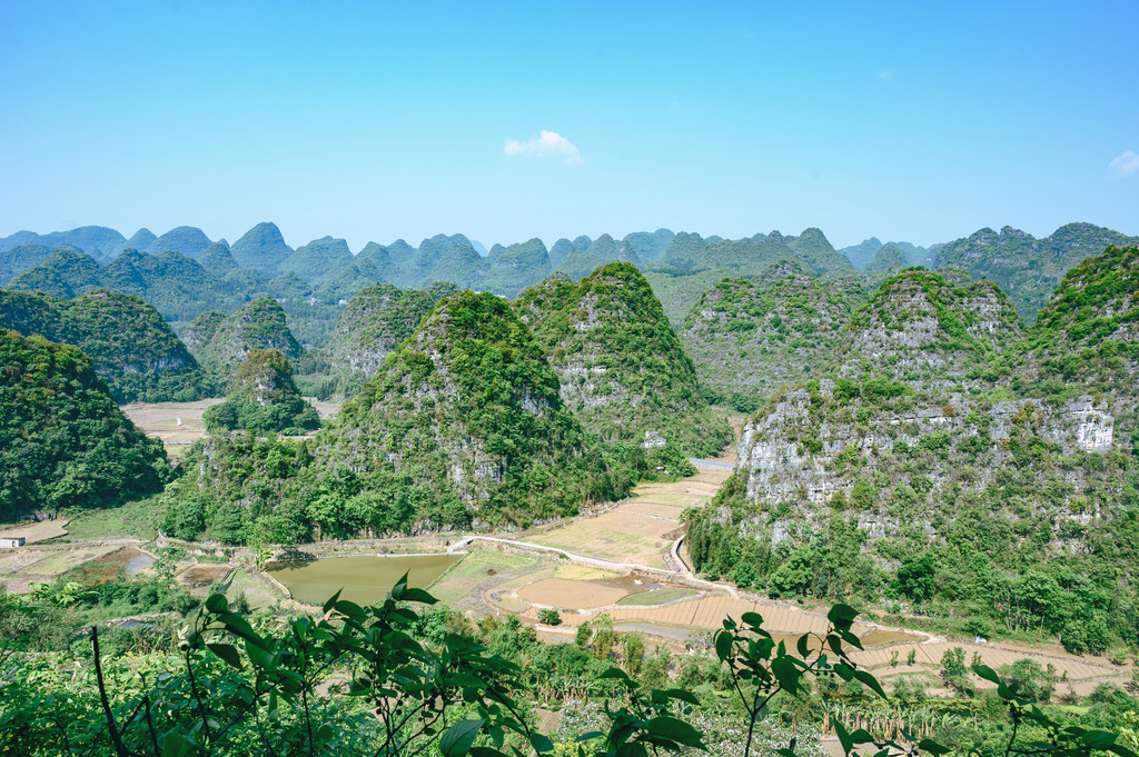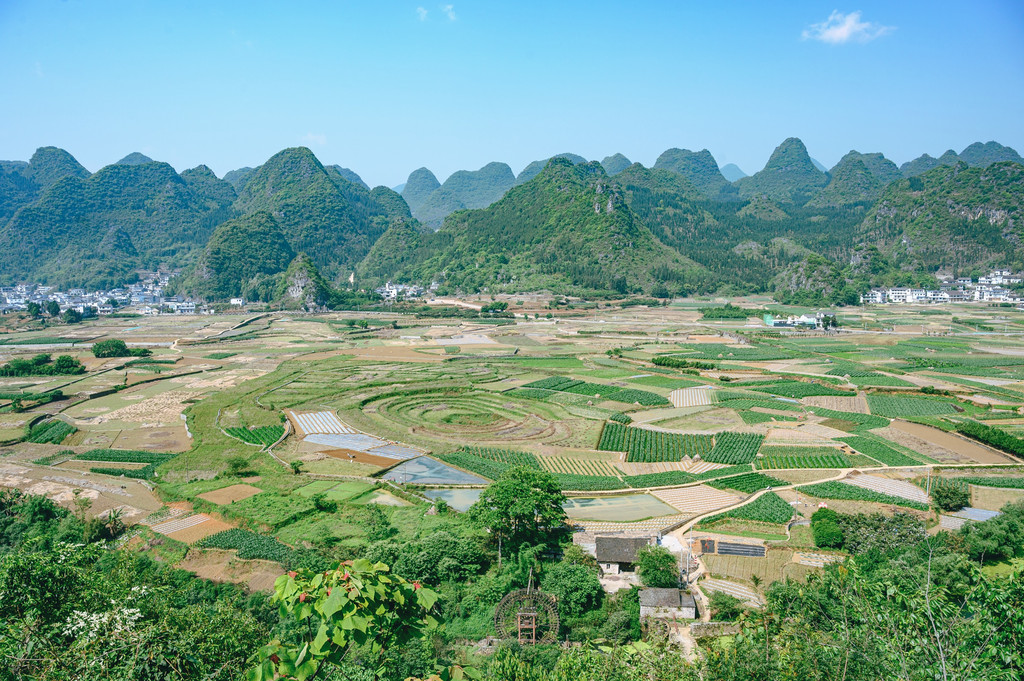 一林,这个“林”可能有些特别,不是树林,而是中国最大最典型的喀斯特峰林——万峰林,这里奇峰如林,山峰下田园村庄,仿佛一幅精美的山水画。