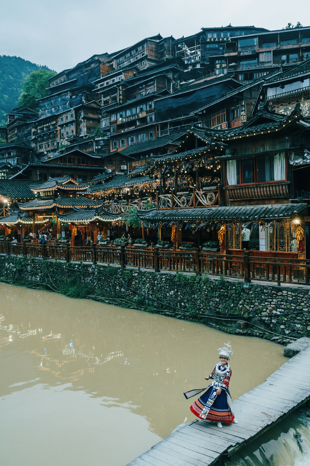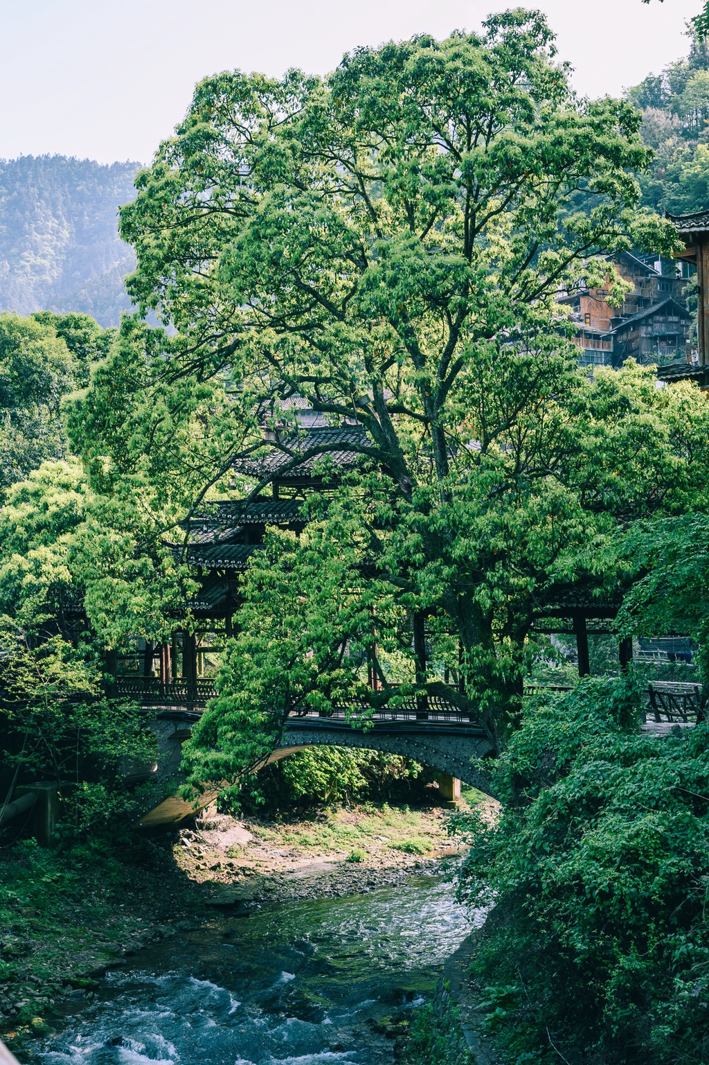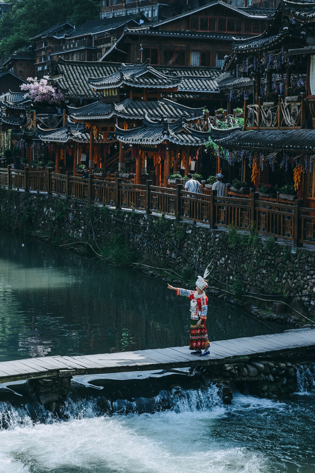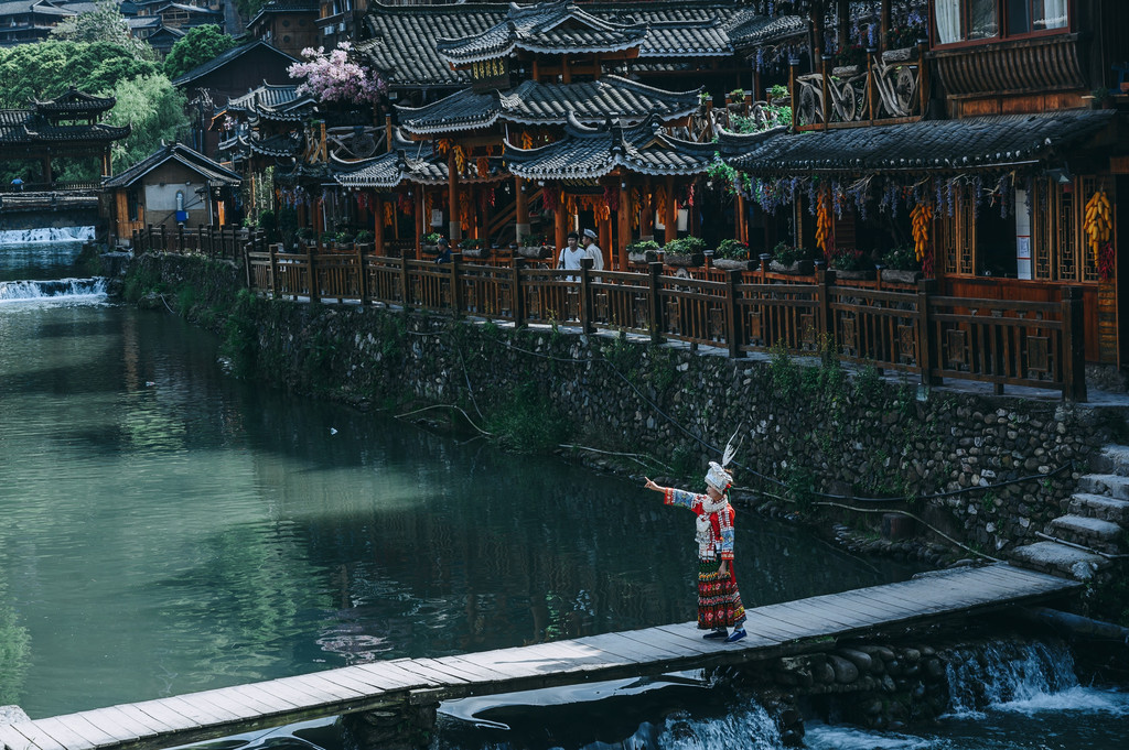 最近很火的一个拍摄是在5号风雨桥的前面一点,是一个比较榨的木桥,背景是对岸层层爹爹的房子,脚下还有流水,不管是坐着还是站着拍照都很好看,如果再遇到好天气那就更好了。需要注意的是,桥比较窄,水流湍急,拍照的时候要小心。