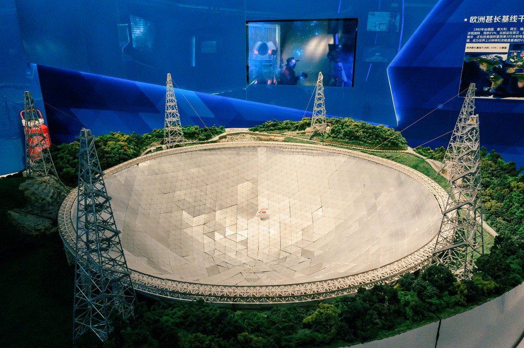 提及这里,是我们每一个中国人都为之而骄傲的一个地方。中国天眼建造的构想始于1994年,历时22年于2016年建成,是中国主导建设,拥有自主知识产权的射电望远镜,其口径达到了500米,是当今世界上单口径最大、最灵敏的射电望远镜。