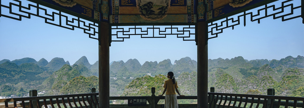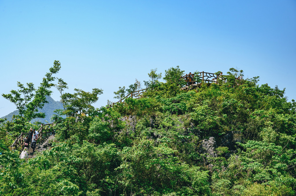 在山间坐落着多处观景平台,是一览万峰林壮美风景的绝佳地点,坐落在山间的核心景观都可以一览无余。山峰一座连着一座,山峦起伏、绵延不绝,好似误入到了世外桃源,一派原始生态的景象展现在眼前,让人心旷神怡,流连忘返。