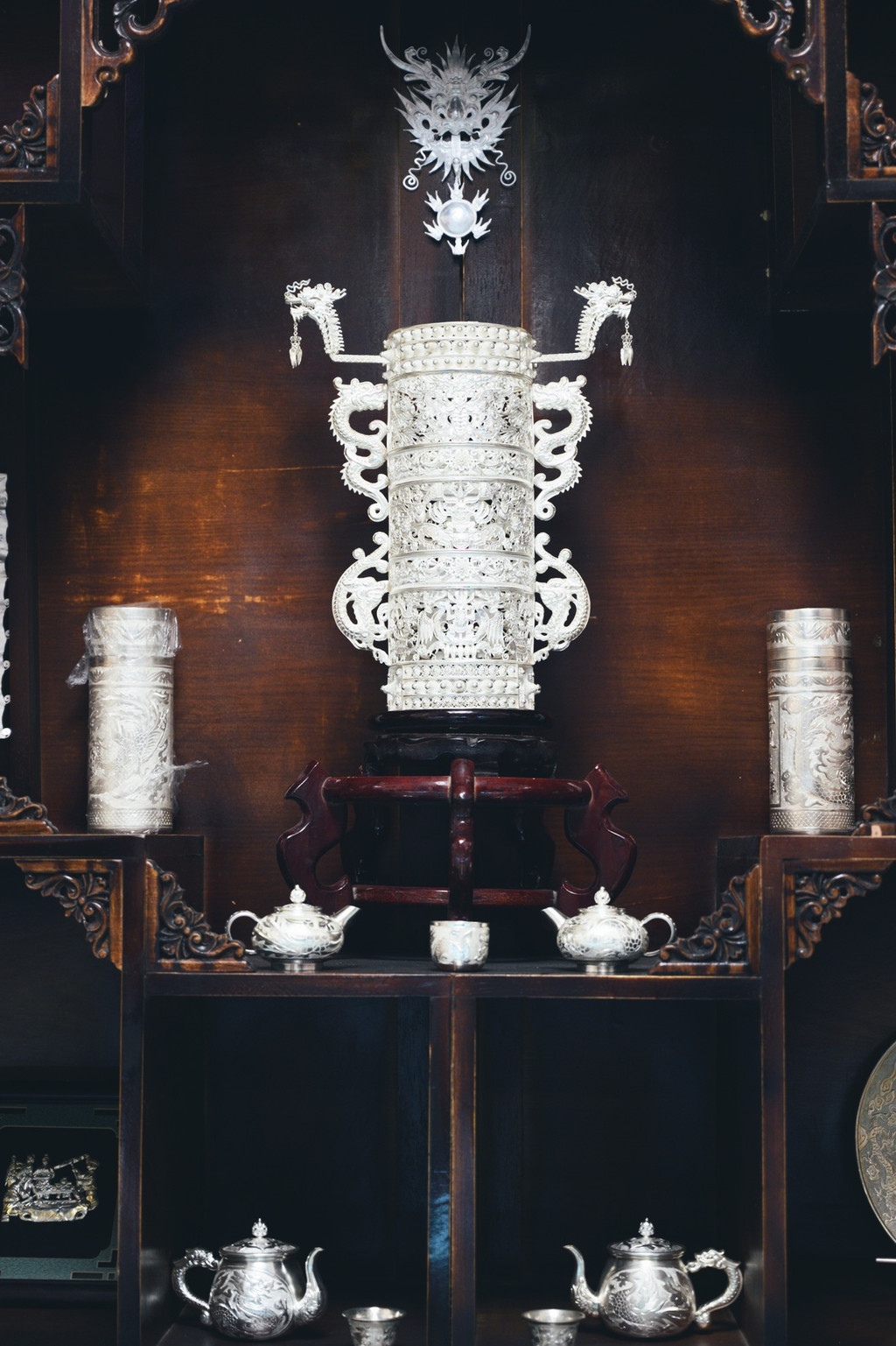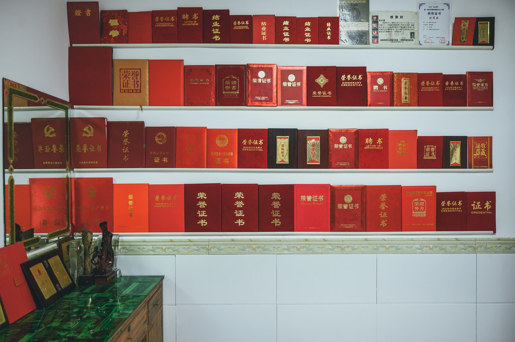 看着满墙的奖杯和荣誉证书,这大概就是他的坚持吧,坚持把国家非遗的手艺传承下午,传播银饰文化,让苗族银饰走向全国,走出国门。正如大家说的,民族的,世界的…