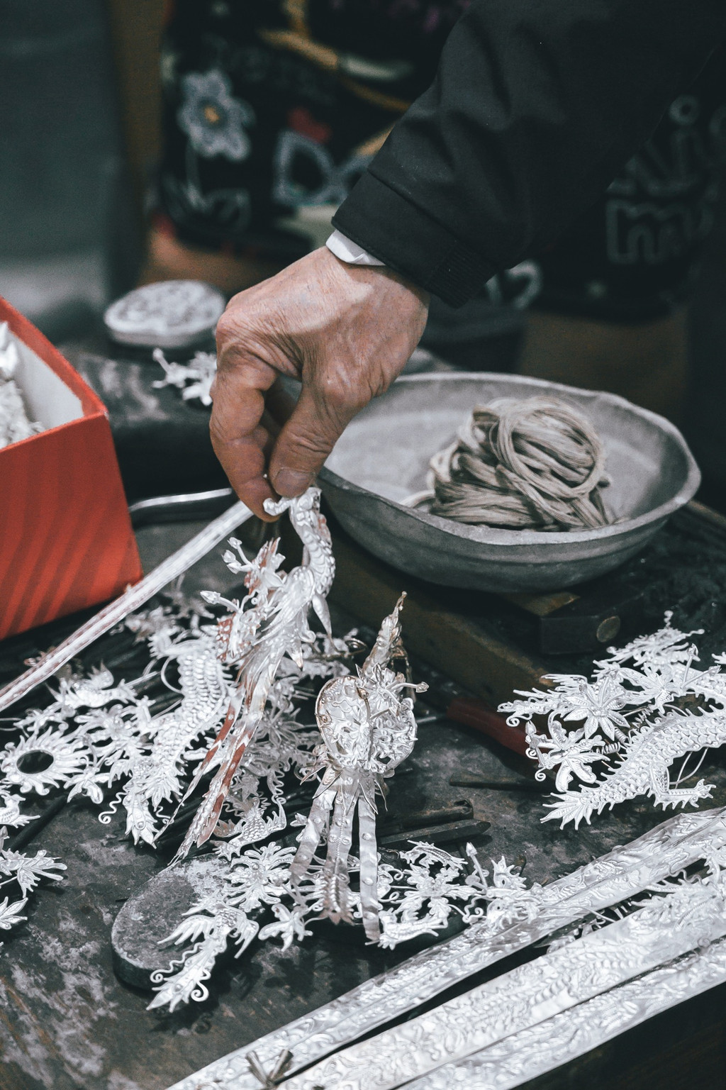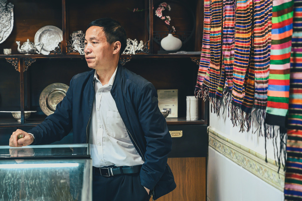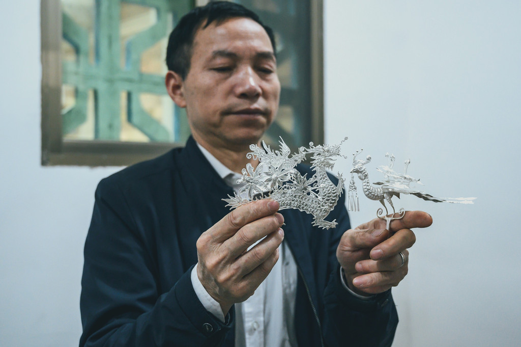 而在这里,基本上一些节日上出现的精美银饰都是出自吴老师之手,吴老师也算是远近闻名。吴老师最让人敬佩可能不是他精湛的技术,敢于创新制作出别具一格的作品,而是他打破常规,开门收徒。