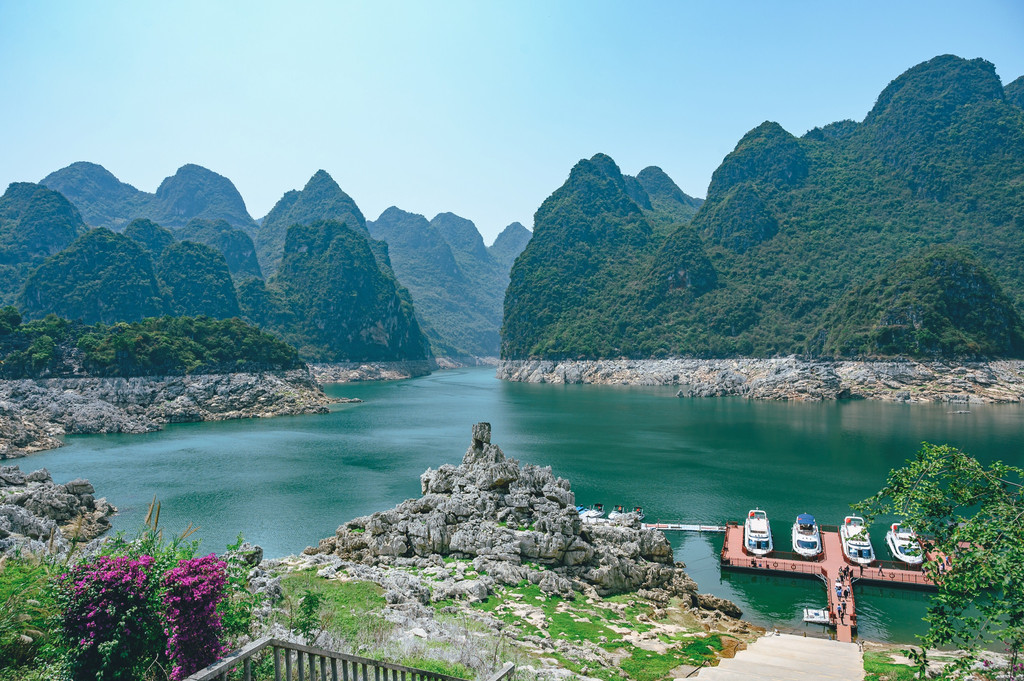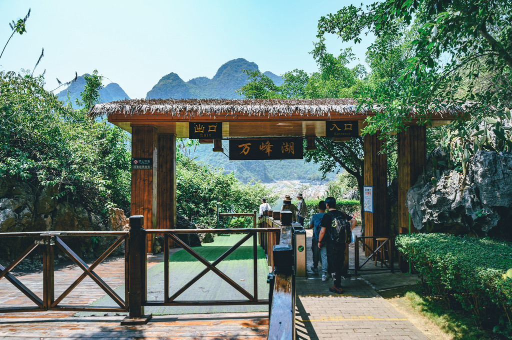 作为珠三角经济区的重要水源地,这里风光秀美、湖水清澈,引得不少周边游客的慕名而来。沿岸景色非常丰富,山峰、石林、天坑、溶洞及森林密布,由此而构成了万峰湖独特的景观,因此万峰湖也有着“ 万峰之湖,西南之最,南国风光,山水画卷”的美誉,宛若一颗明珠般镶嵌在这万峰丛林之中。