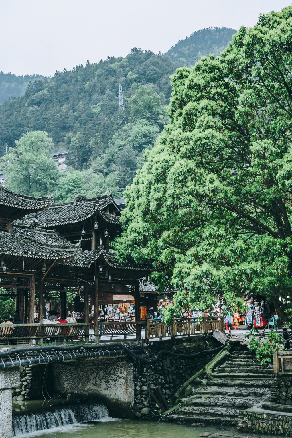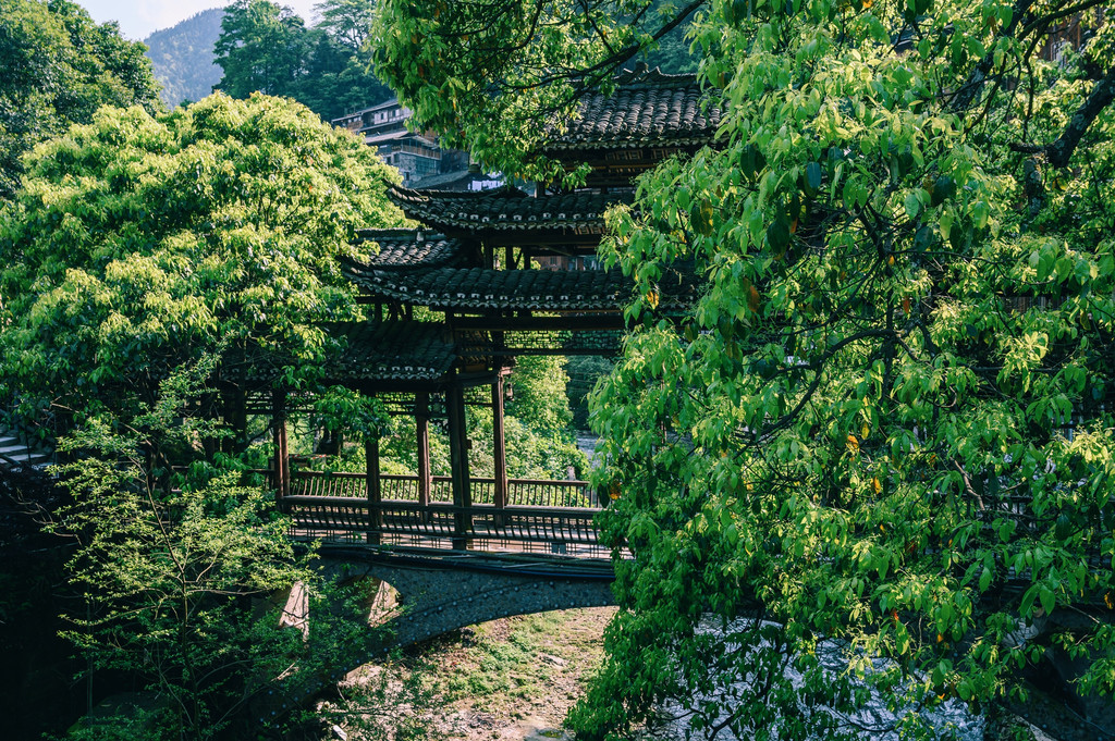 这里的每一个风雨桥都很适合拍照,但仅限于长焦,要不背景全都是人。