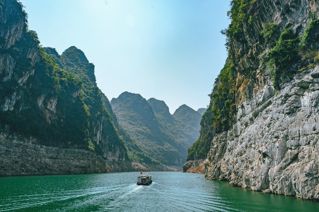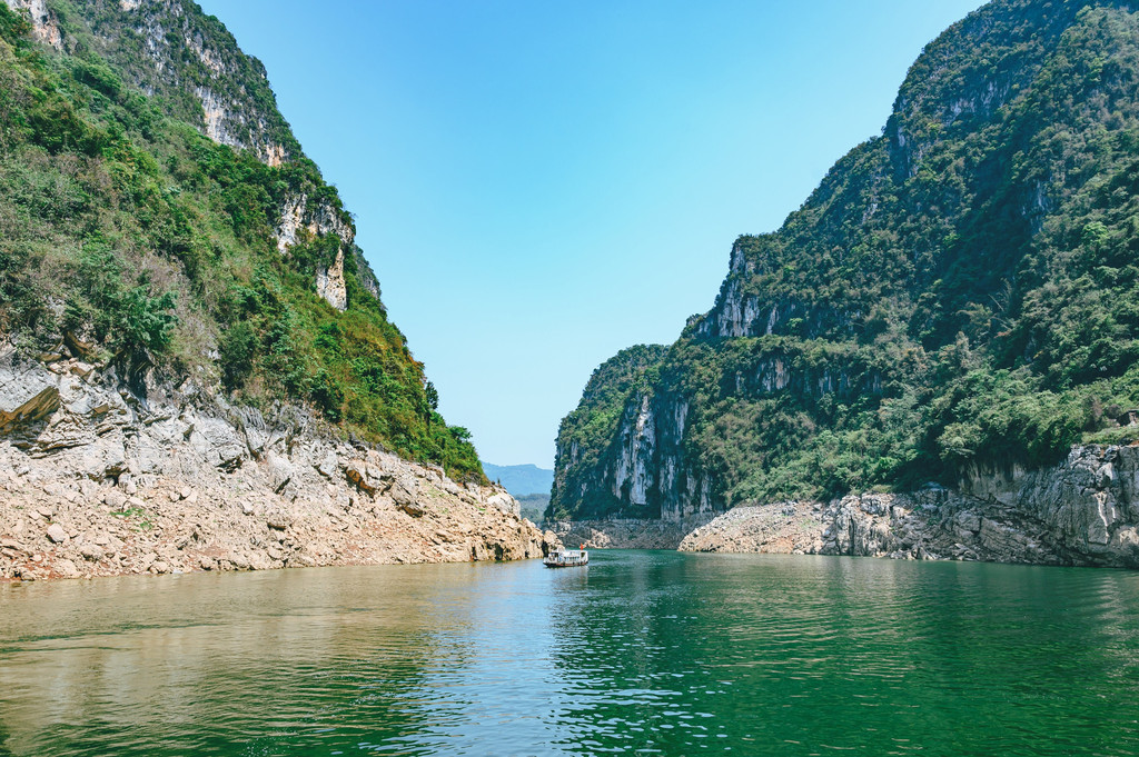 我最喜欢的还是小三峡,虽然我们游览的时候是逆光,但也很美,尤其是前方这条船驶过,瞬间画面就不一样了,一旁的阿姨情不自禁的称赞,这比三峡还美。