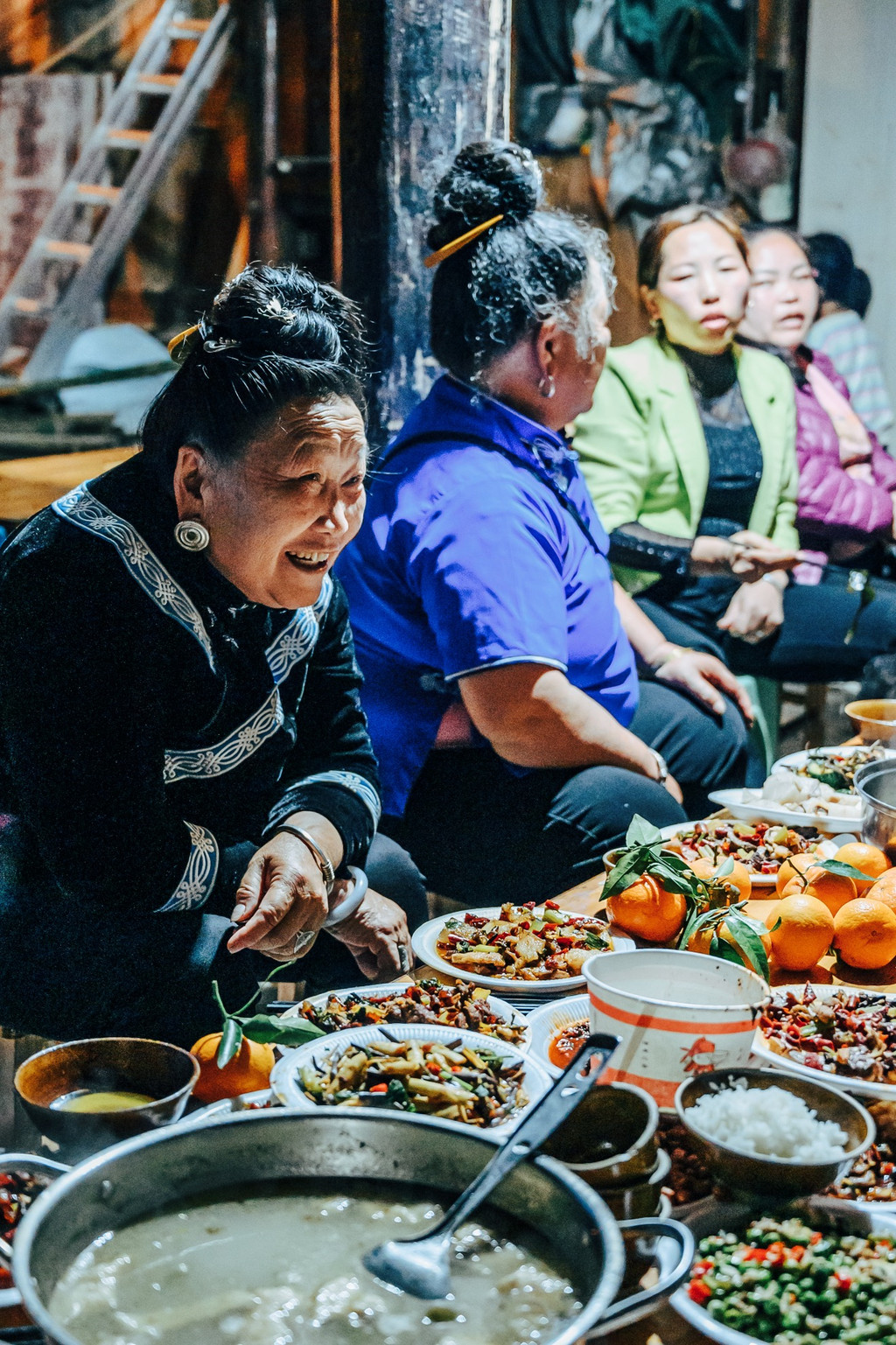 从观景台下来天空依稀的下起了小雨,气温也开始下降,简单的在景区体验了一次长桌宴,自然也少不了载歌载舞的高山流水。