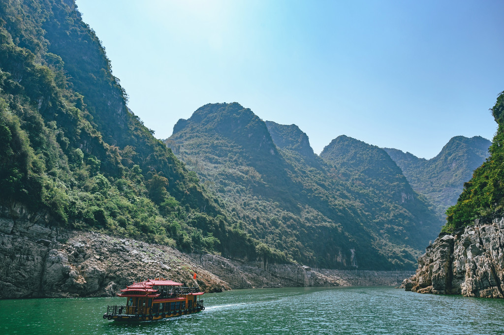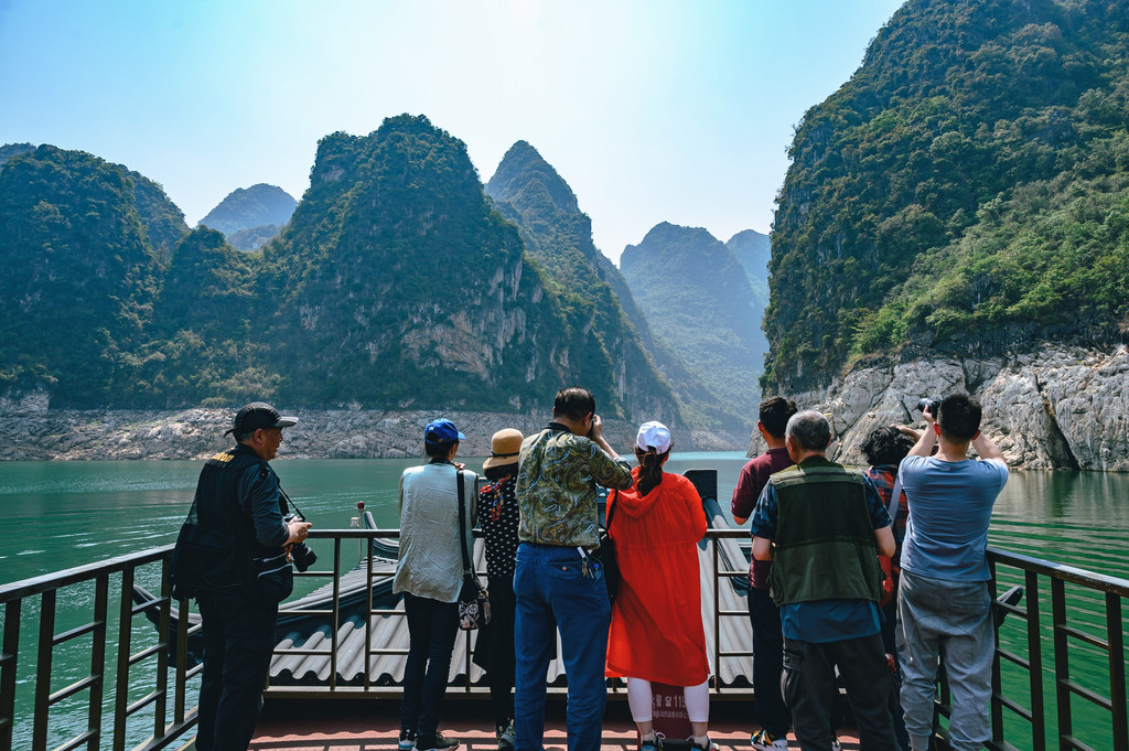 乘船从红椿码头出发,船在湖中行,宛若画中游。这里不仅是游客的天堂,对于摄影师、画家来说,绝对是出好作品的地方,伴随着游船穿行在山峰间,眼前所看到的景色宛若巨幅的山水画卷,颇有桂林山水的气质,使人赏心悦目。