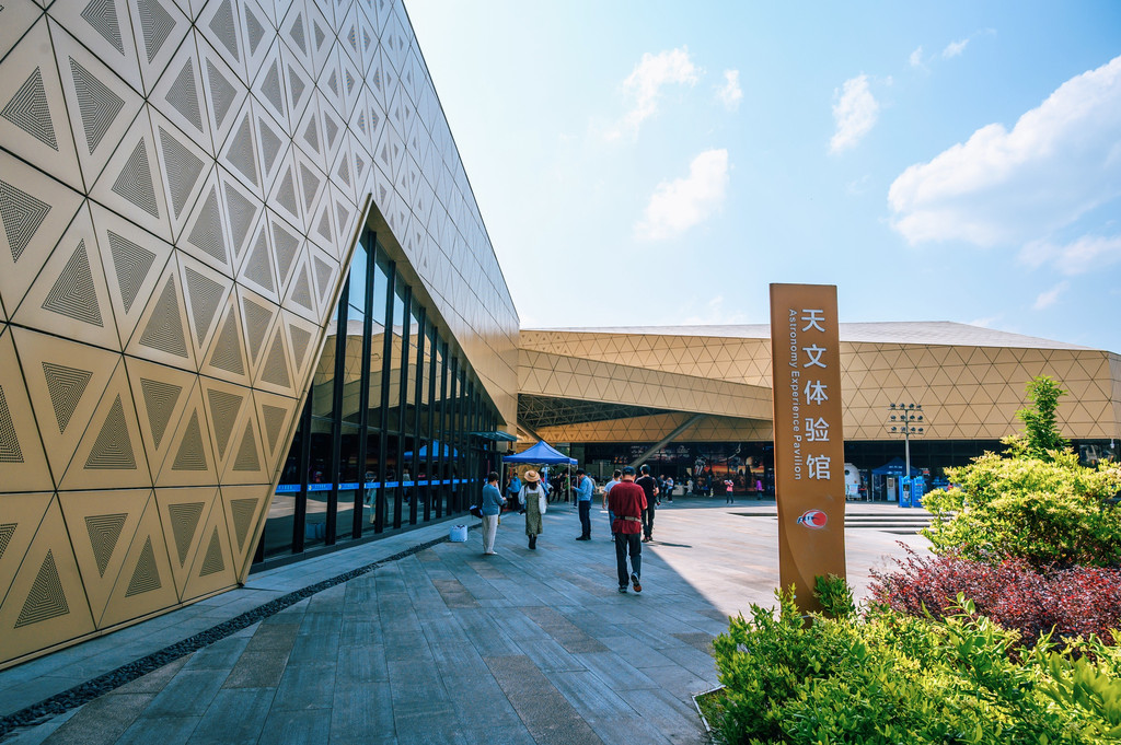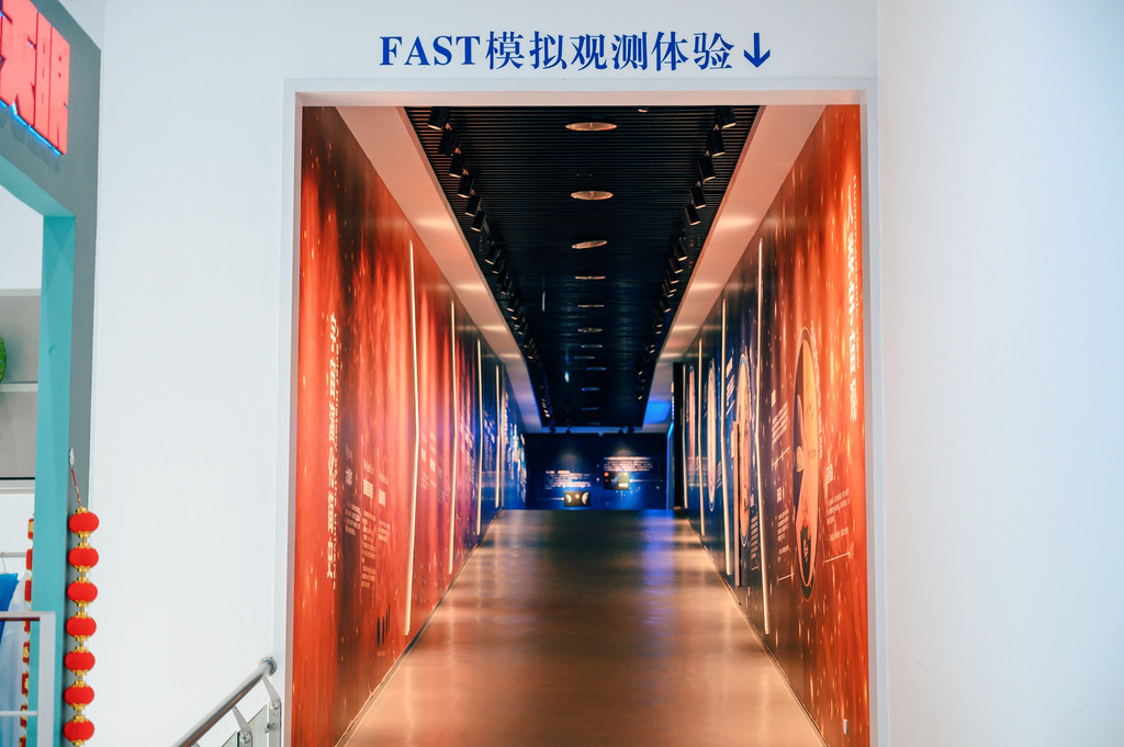 走进景区,可以先到天文体验馆游览观光,这是中国首座以射电天文为主题的天文馆,主要以天文知识科普为主,可以了解到射电的历史、发展历程、FAST项目的独特技术及FAST三大技术创新等,都可以在这里得到科普,无论是对于天文爱好者,还是普通大众,相信好奇心都是十足的。