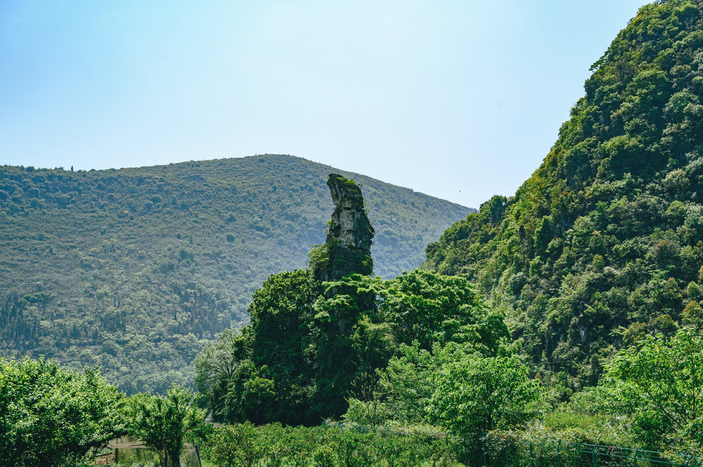 山峰形态各异,有两座山峰与其它的山峰不同,它们看起来矮小,且是孤峰,其中一个的因形似一位将军伫立于此,由此而得名“将军峰”,还有一个地处众多高大山峰中间,因此被称之为众星捧月。