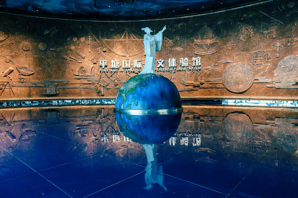 进入天文体验馆,映入眼帘的是一尊雕塑,是屈原的“问天雕塑”,不知道你还记得屈原的《天问》吗?文中描述的是古时所观测的天文现象,走进天文体验馆,恍若是一场探秘天文、银河星系的神秘之旅。