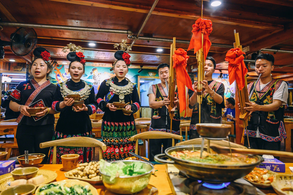 到了几点办理好入住,简单的休息,带着咕咕叫得胃觅食去了,没有特意去寻找哪一家店,随便走进一家店,没想到很有当地的特色,在吃饭的时候还有当地的歌舞欣赏,自然少不了这里的高山流水。