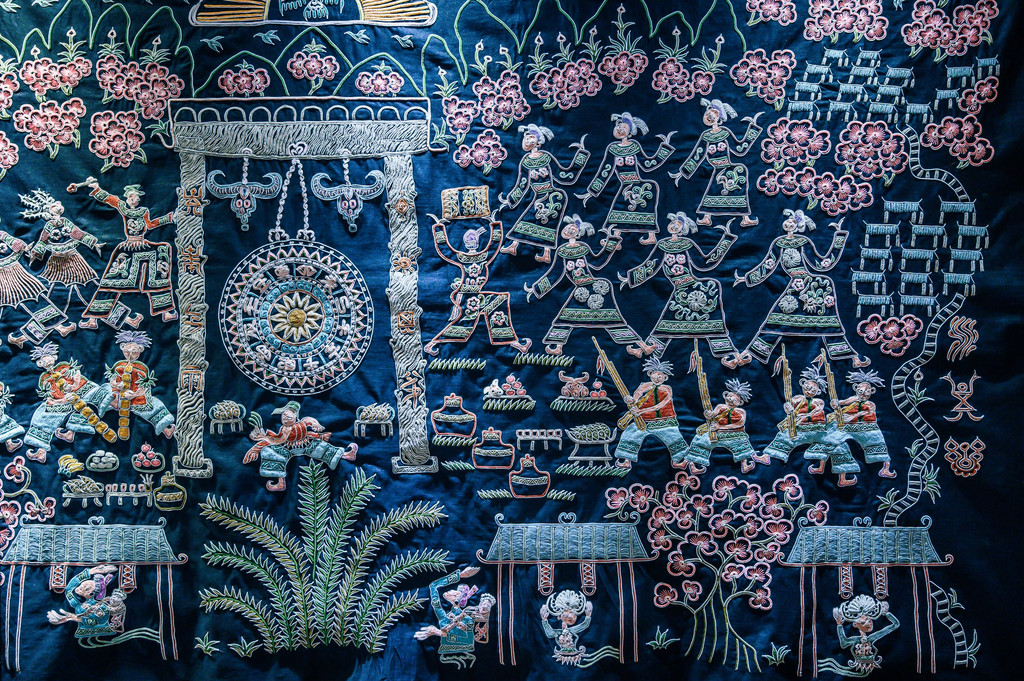 水族应该是贵州众多少数民族中最特别的一个了,这个族群拥有着自己的文字,也拥有着一门传承了上千年的手工技艺—马尾绣。所以到了万户水寨,自然要前往马尾绣博物馆了解欣赏这独一无二的艺术品。
